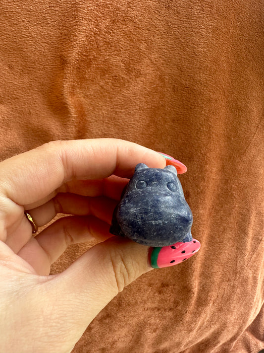 Blauwe Aventurijn Nijlpaard carving