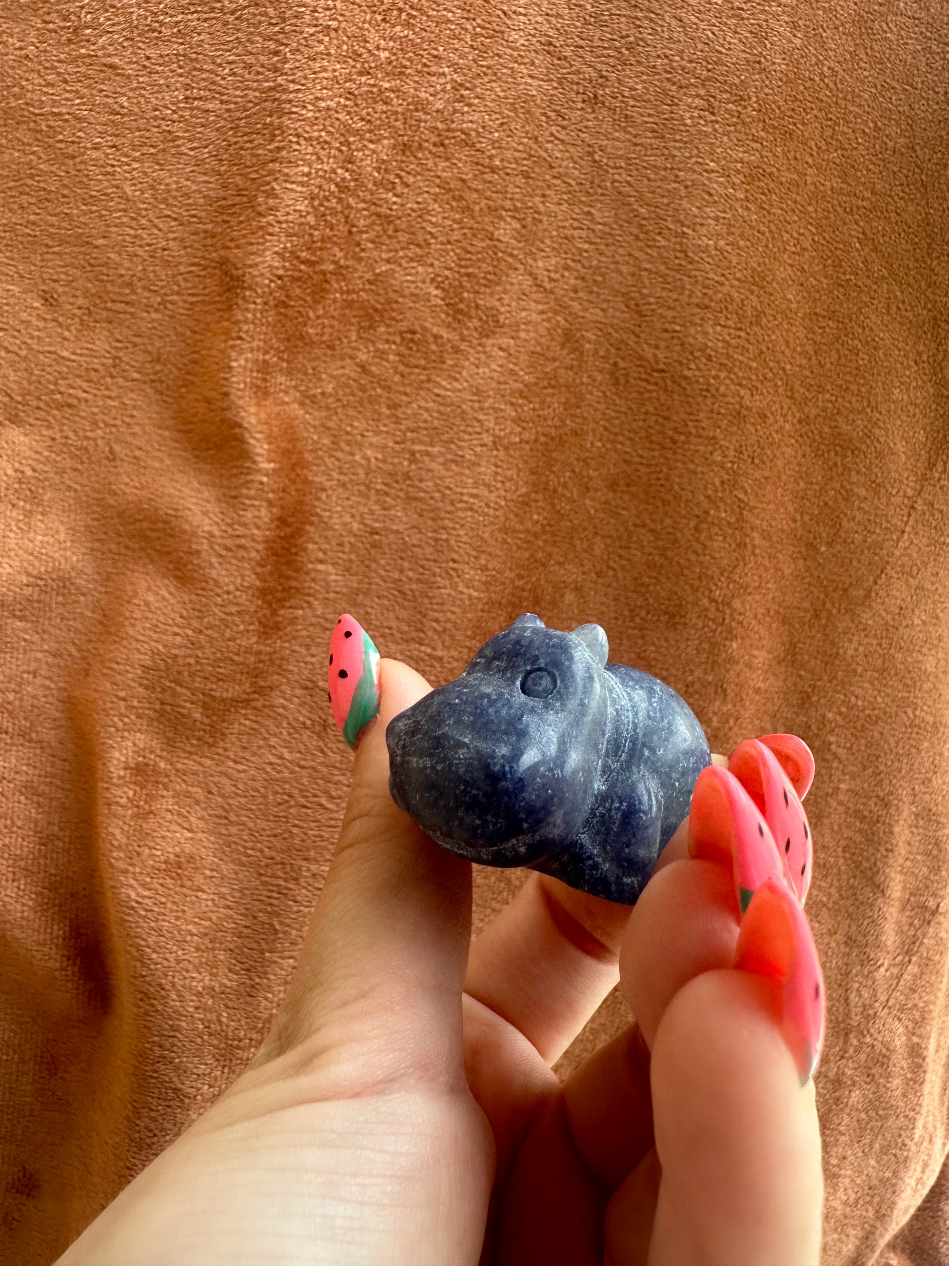 Met deze vrolijke carving haal jij een mooie toevoeging van jouw edelstenen collectie in huis. Deze hippo is gemaakt van Blauwe Aventurijn en heeft mooie details in de carving. Dit is ook een leuk cadeau voor een nijlpaardliefhebber.