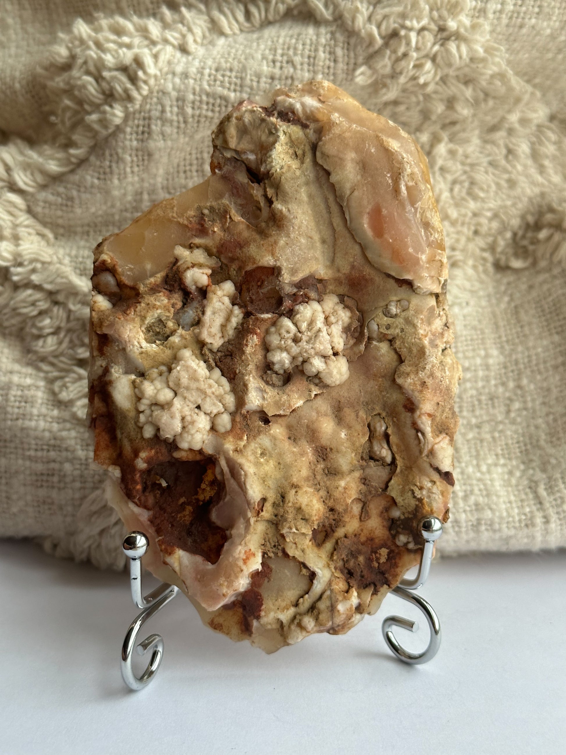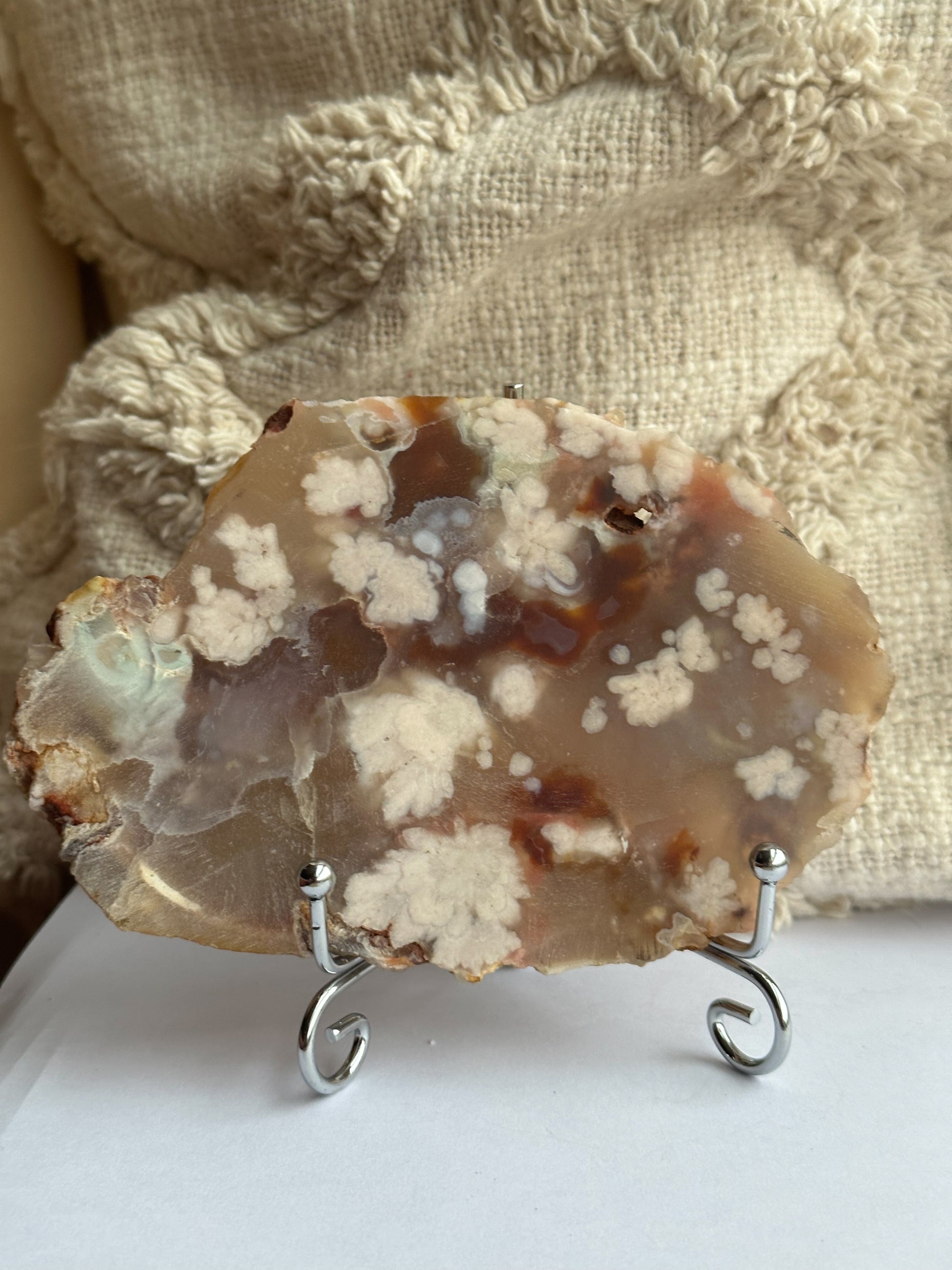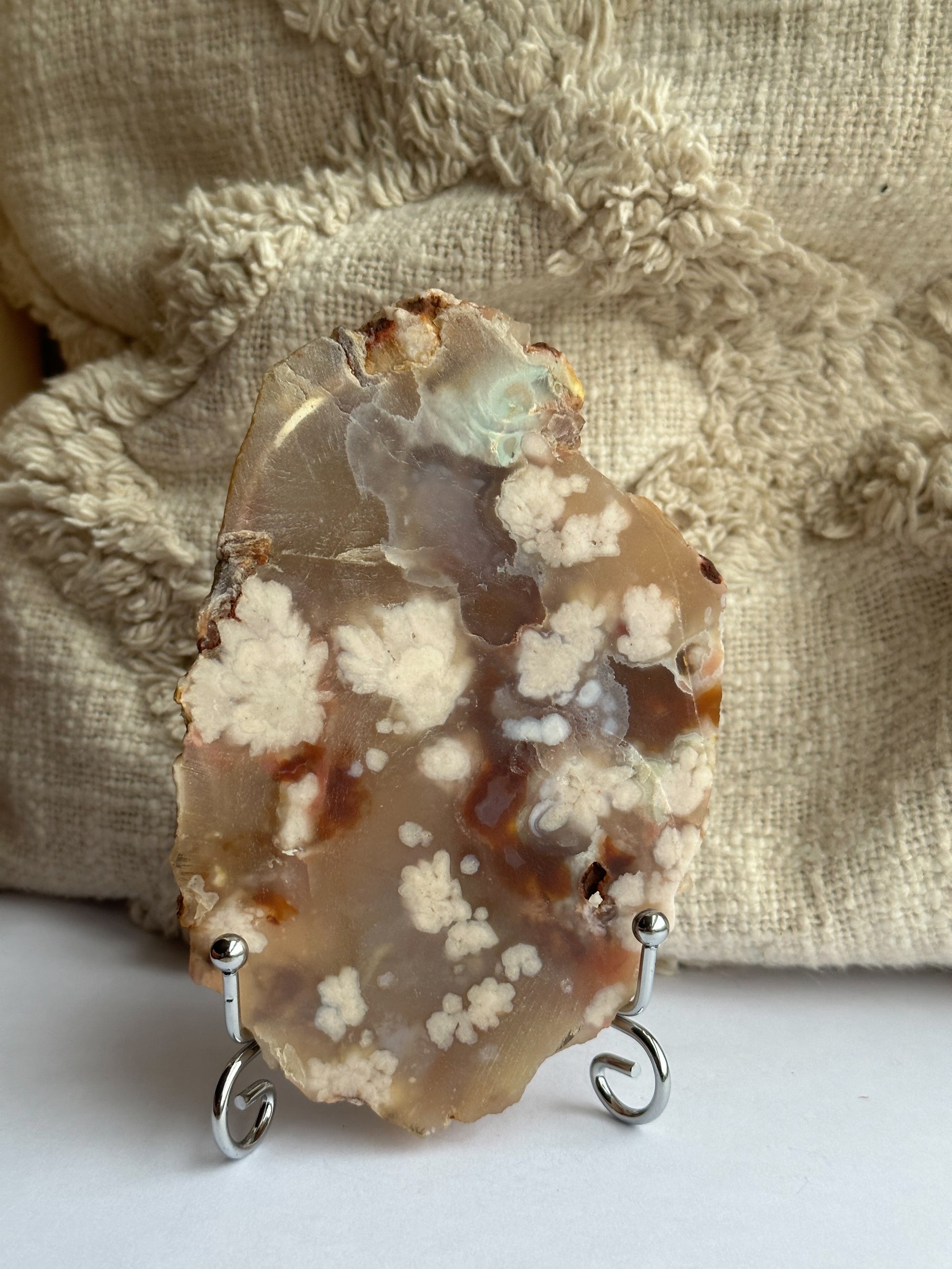Gek op Bloemagaat? Dan hebben wij hier een pareltje voor jou! Deze mooie slab is een perfecte aanvulling aan jouw collectie. De slab heeft prachtige bloemen en mooie kleuren wat zorgt voor een schitterend contrast. Je kan de slab combineren met verschillende houders die wij op de website hebben. Neem vooral een kijkje bij deze houders. De slab wordt niet standaard met houder geleverd.