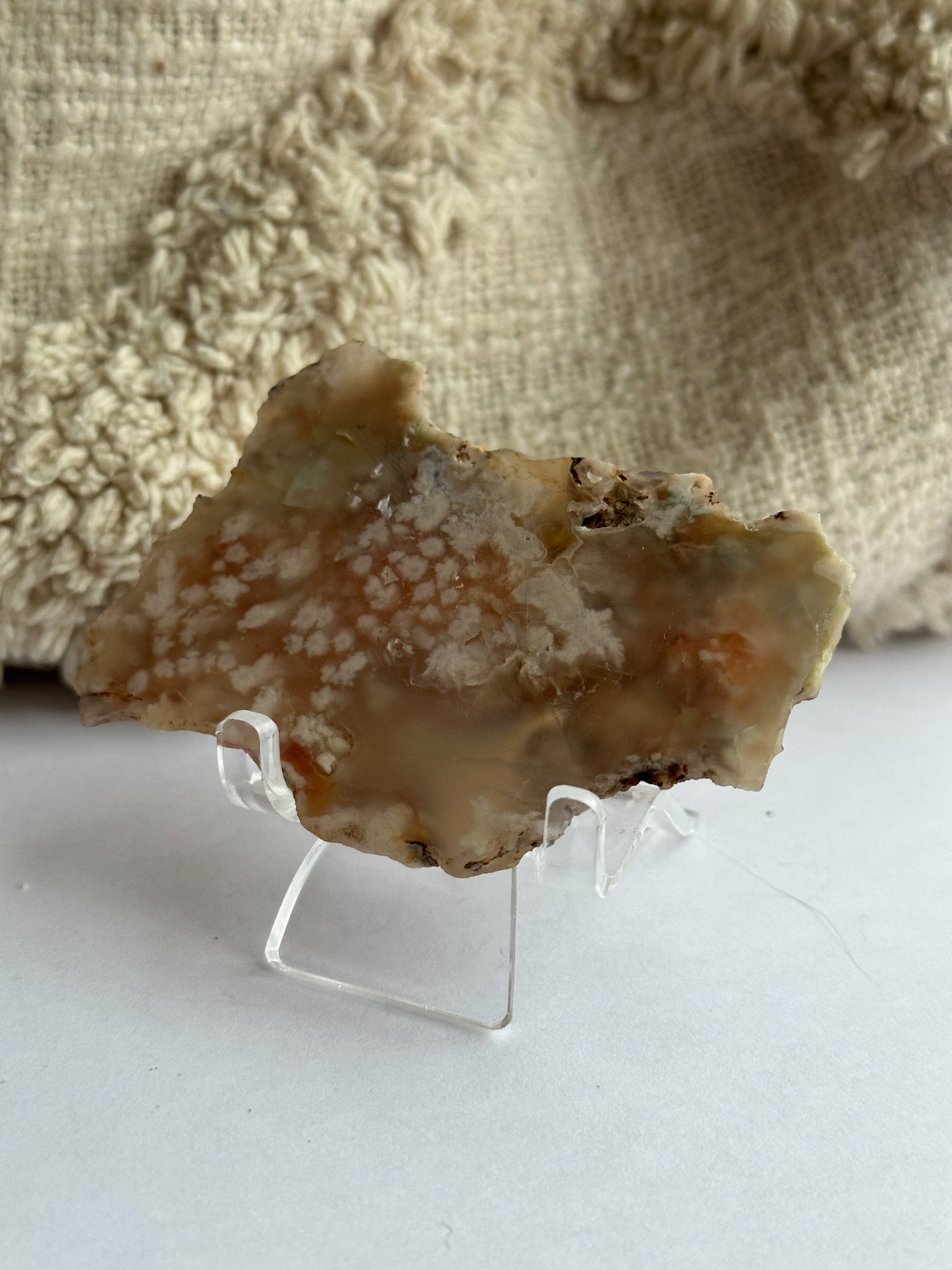 Gek op Bloemagaat? Dan hebben wij hier een pareltje voor jou! Deze mooie slab is een perfecte aanvulling aan jouw collectie. De slab heeft prachtige bloemen en mooie kleuren wat zorgt voor een schitterend contrast. Je kan de slab combineren met verschillende houders die wij op de website hebben. Neem vooral een kijkje bij deze houders. De slab wordt niet standaard met houder geleverd