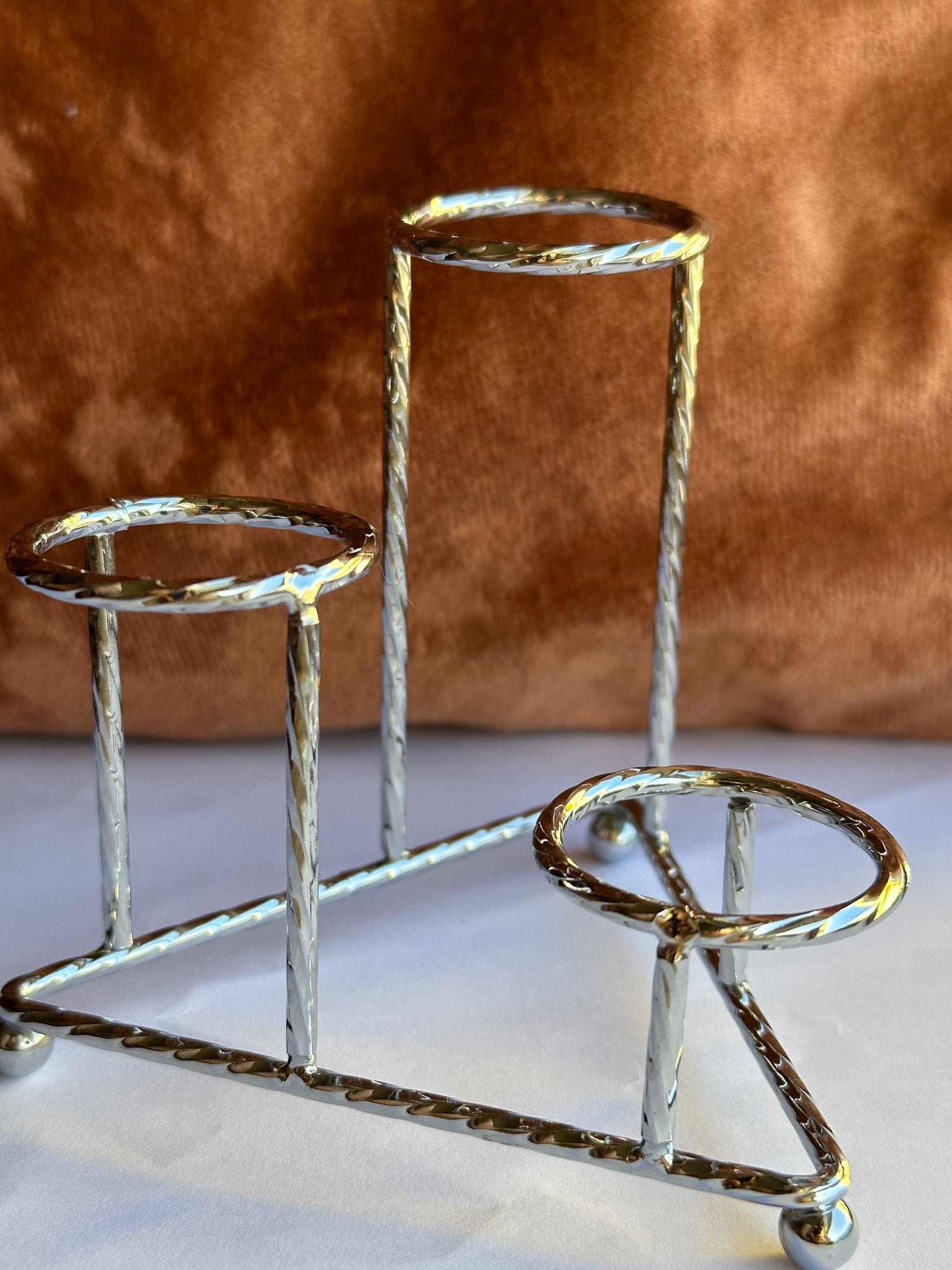 Op deze bolhouder kunnen verschillende bollen worden gepresenteerd, wij raden het aan om middel tot een wat groter formaat hierop te presenteren. Het is een mooie zilveren houder met sierlijke details. Met deze bolhouder kan je alle kanten op. Het is een stabiele houder waar de bollen netjes op komt te liggen. Er is ruimte voor drie bollen.