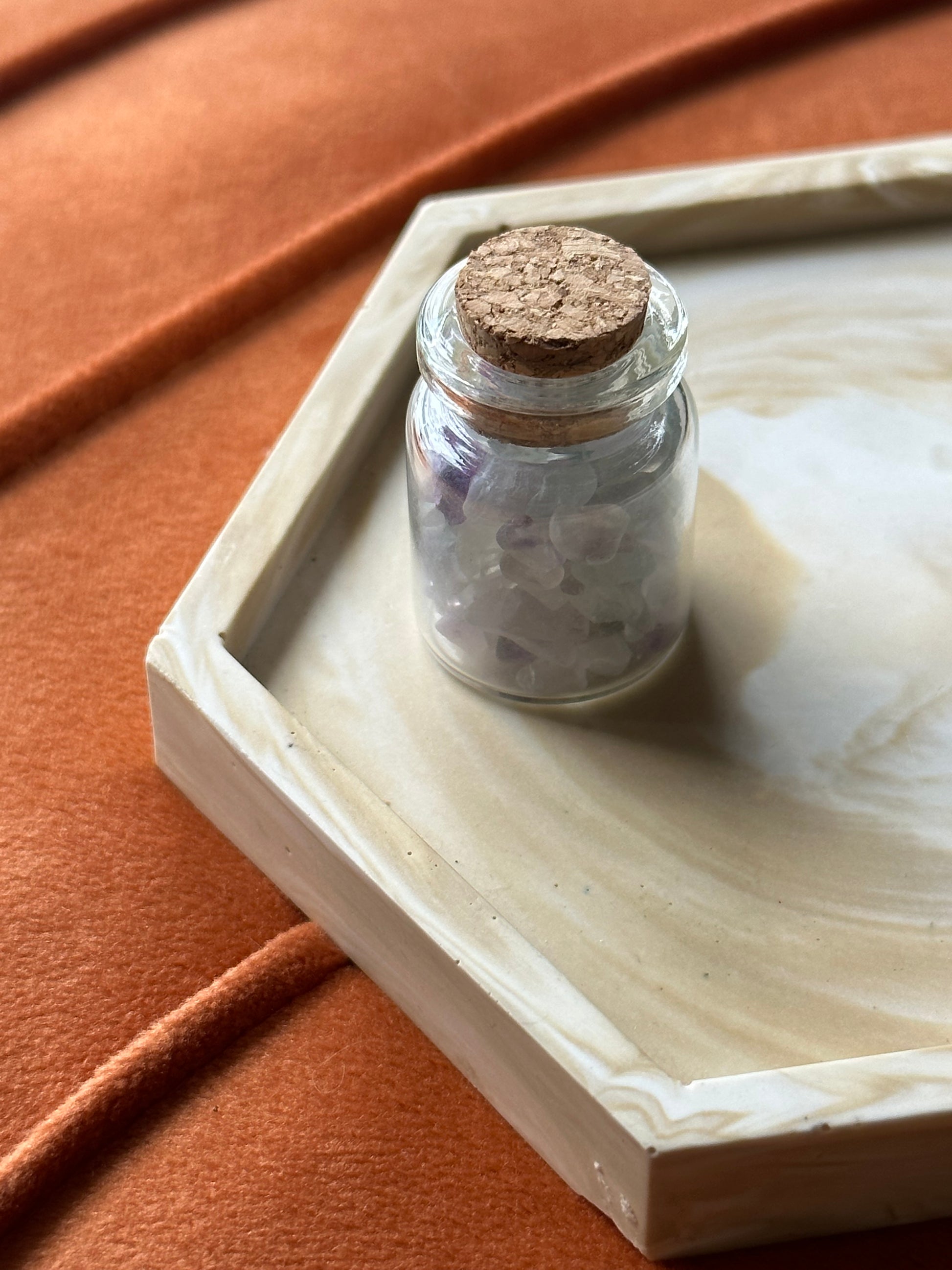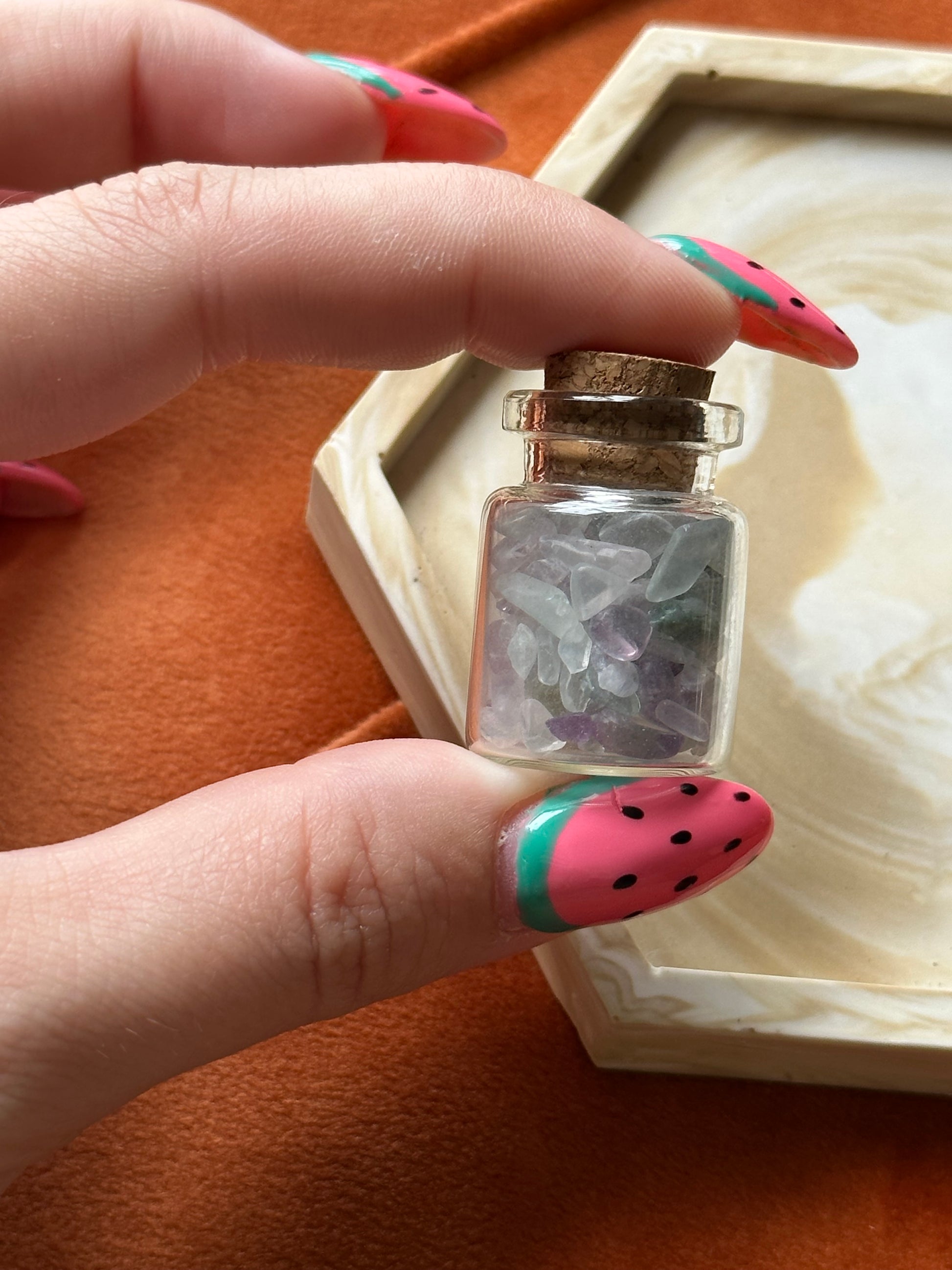 Dit flesje vol focus is perfect om cadeau te geven of ergens in huis neer te zetten. Dit flesje is gevuld met Fluoriet. Deze steen is erg geschikt voor een flesje vol focus door de mooie werking.
