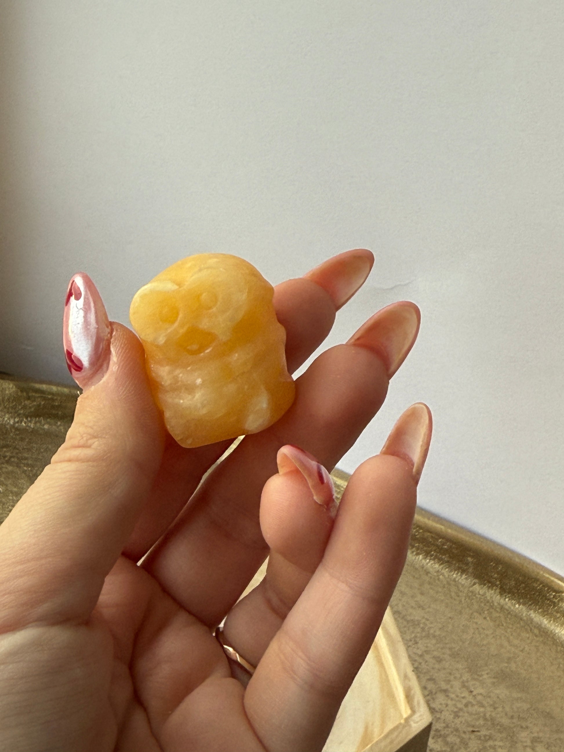 Hoe schattig is deze minion gemaakt van Honingcalciet! Een leuke gedetailleerde carving die leuk is als cadeau of in jouw carving collectie.