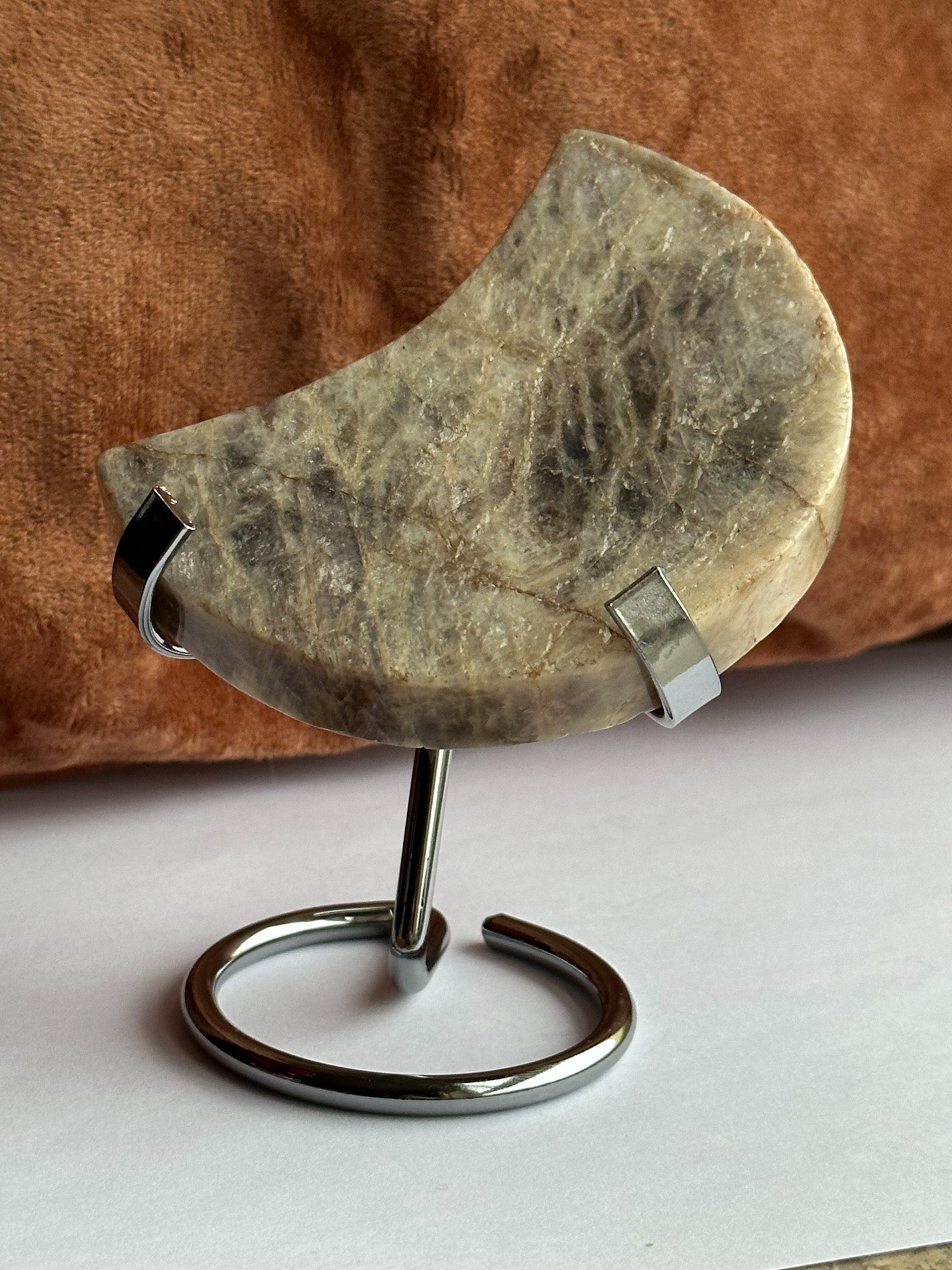 Deze geweldige maan is een ware eyecatcher in jouw interieur. Deze maan komt met een stevige standaard en een geweldige flash! De maansteen heeft een geweldige flash en is van een dikke mooie kwaliteit. Door de flash is de maansteen een geweldige eyecatcher vanuit alle hoeken van het huis. Telkens zie je weer iets nieuws.