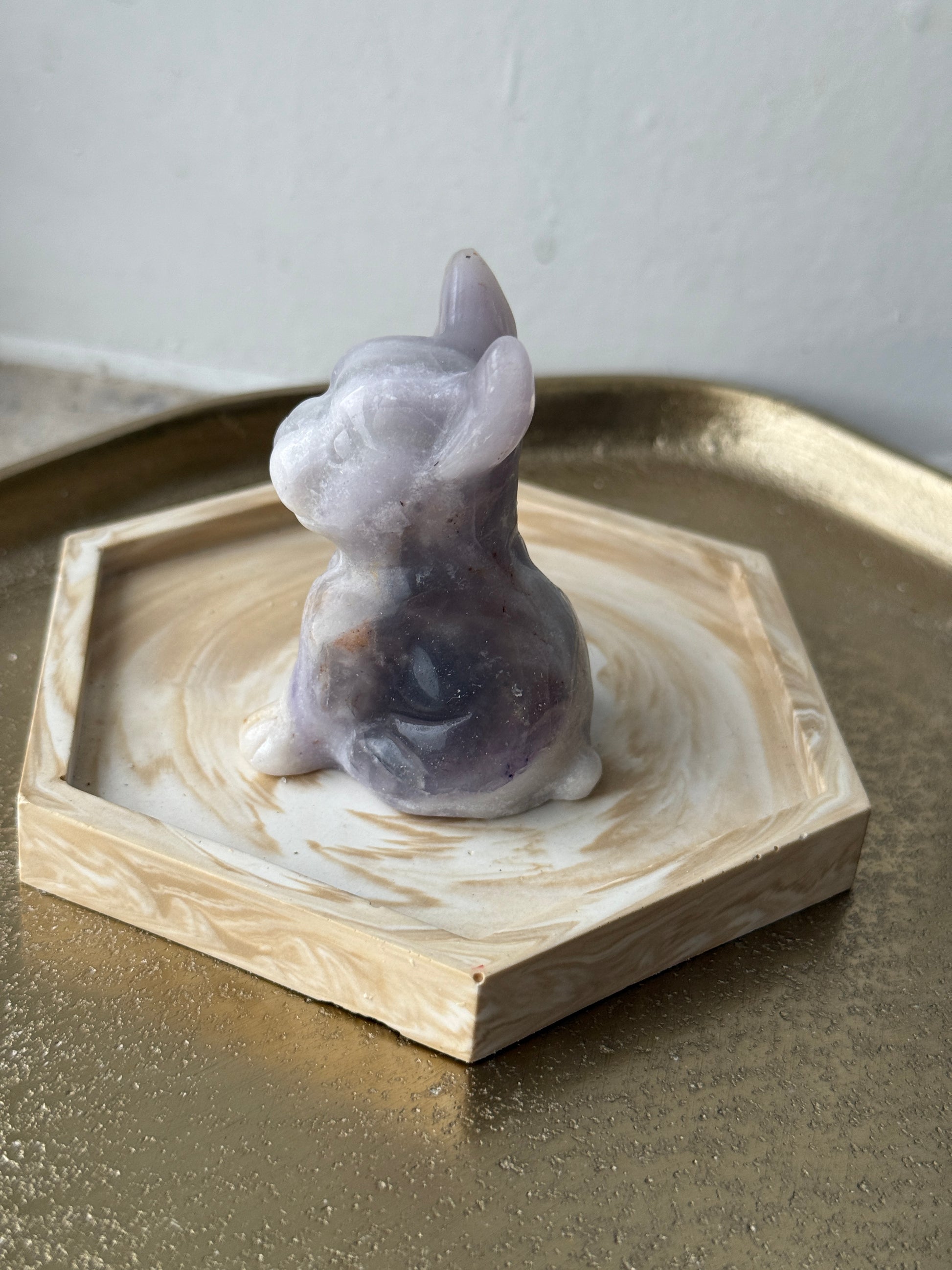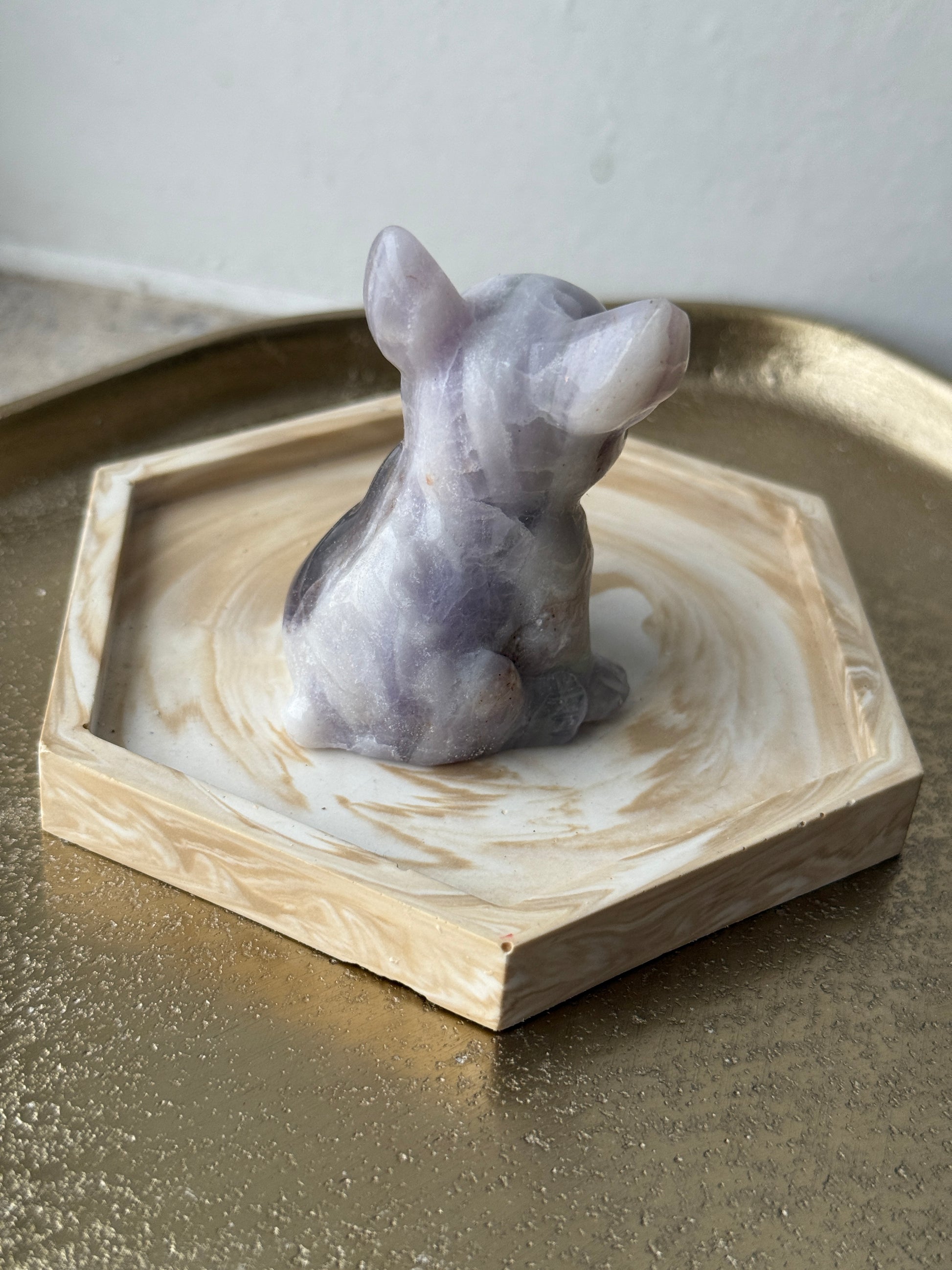 Hoe schattig is deze Franse bulldog gemaakt van een mooie lavendelkleurige Amethist? Wij vinden hem zo schattig! Perfect voor de hondenfan ! Ook leuk om cadeau te doen of toe te voegen aan jouw collectie. De carving heeft mooie details en is gemaakt van Amethist.
