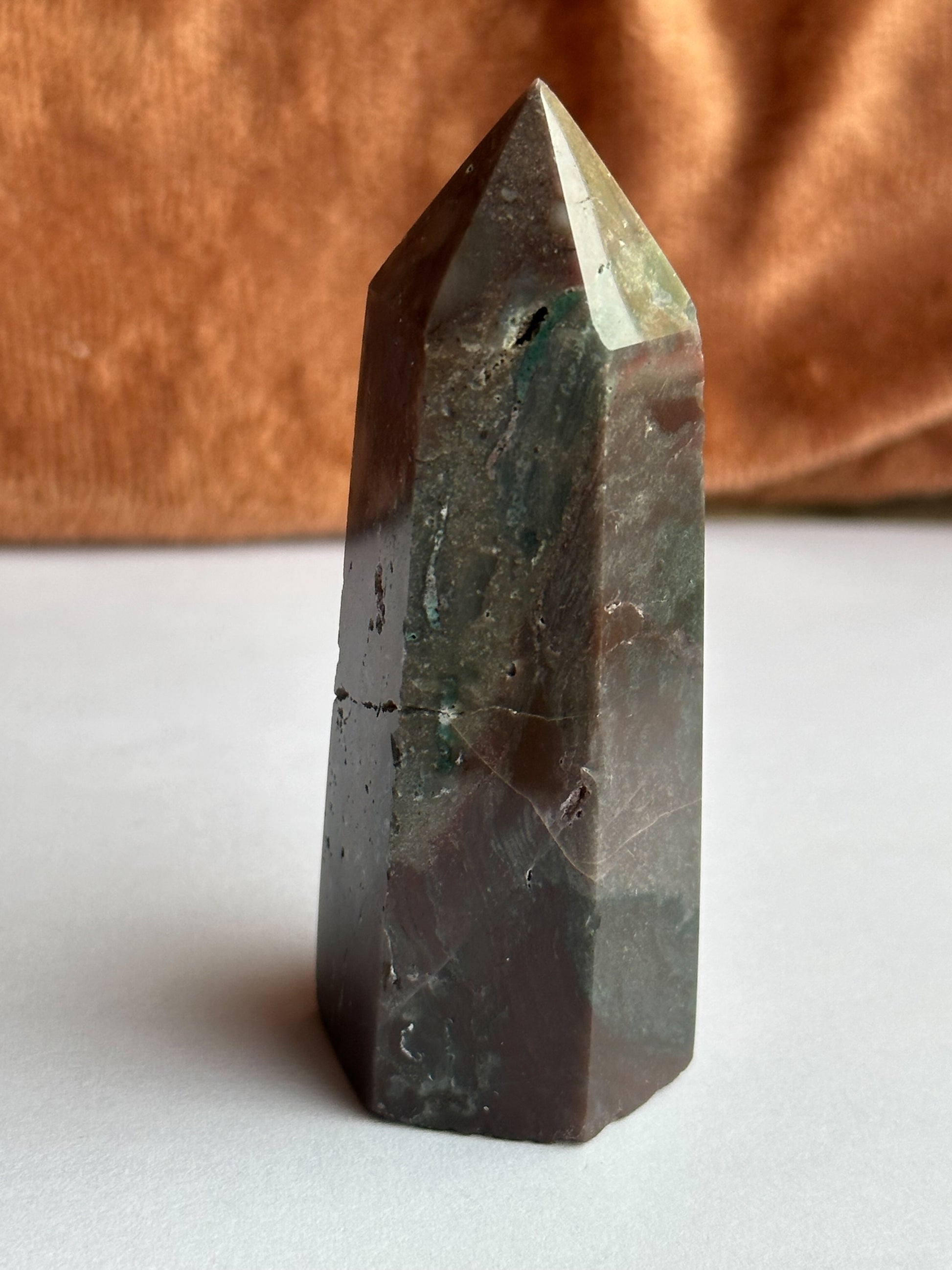 Duik in de kalmerende golven van Oceaan Jaspis met ons betoverende Oceaan Jaspis Torentje. Elke steen is zorgvuldig geselecteerd en met precisie gepolijst om de natuurlijke pracht van dit kristal te onthullen. Een perfecte aanvulling op je ruimte, dit torentje brengt de rust van de oceaan naar jouw leefomgeving.