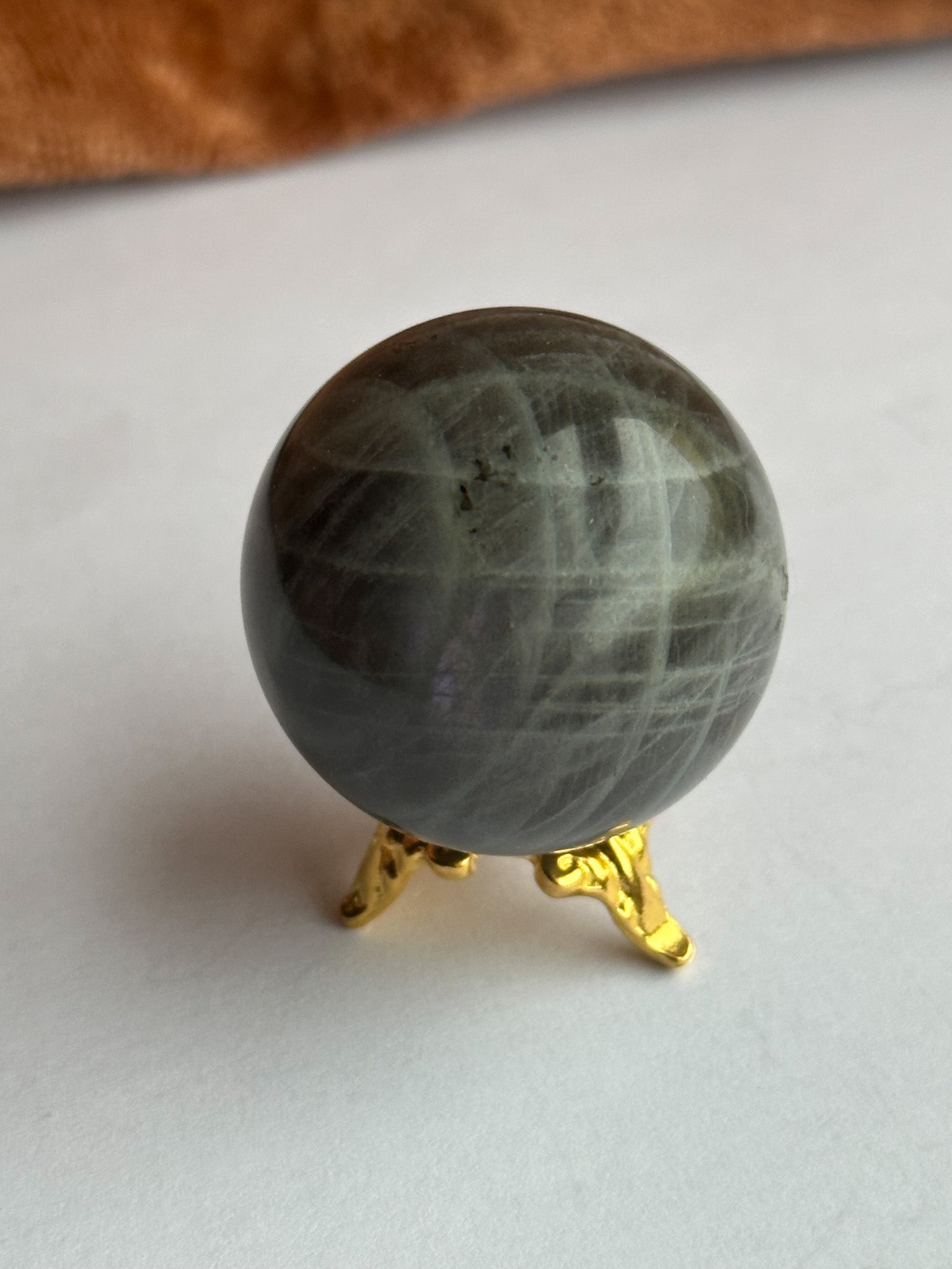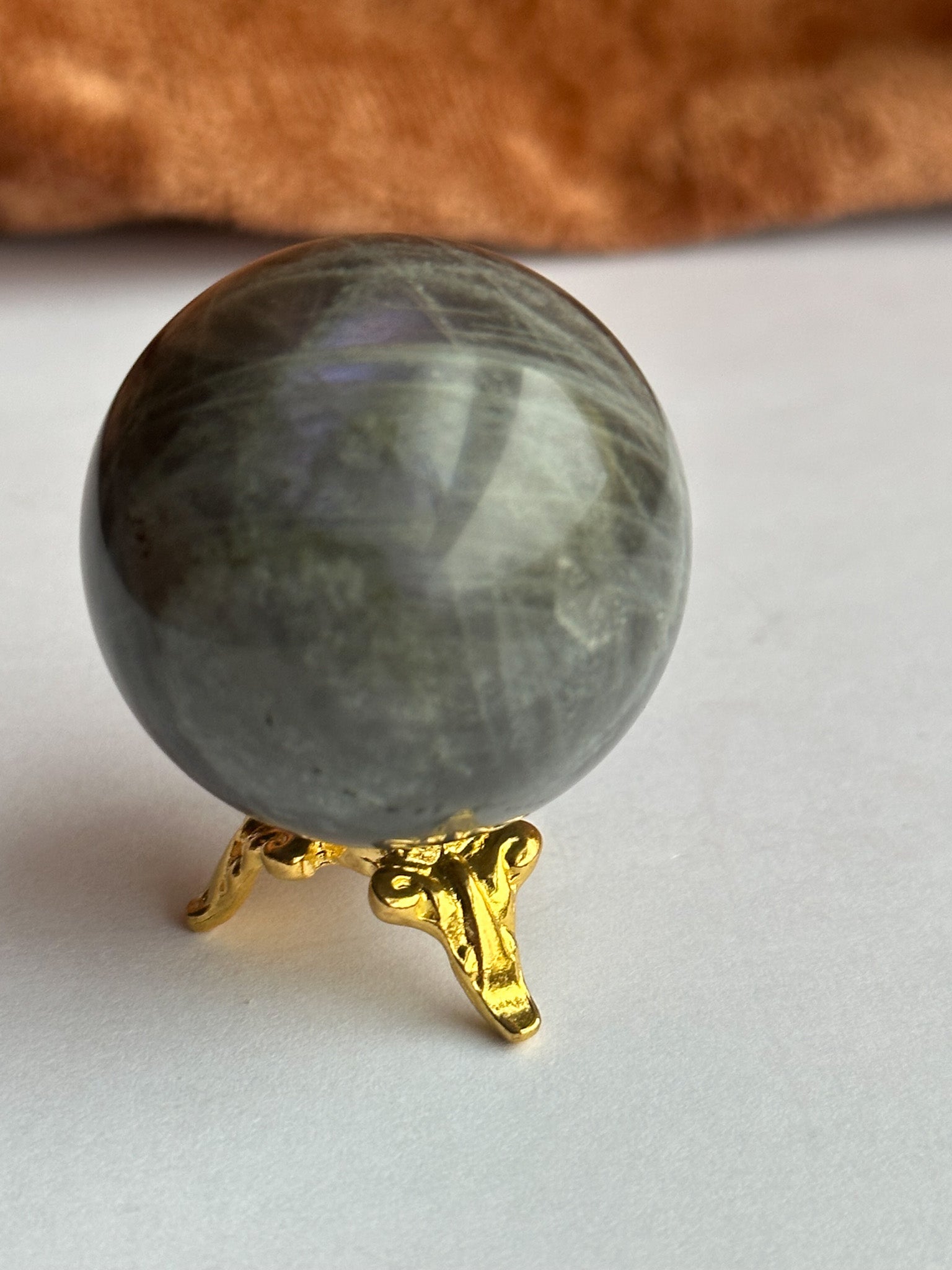 Deze Labradoriet bol straalt je tegemoet! De Bol heeft een paars/rozige flash waarvan wij helemaal onderste boven zijn. Prachtige aanvulling van jouw edelstenencollectie. Combineer hem met een bolhouder van onze webshop en geef deze bol een mooie plekje in jouw interieur.