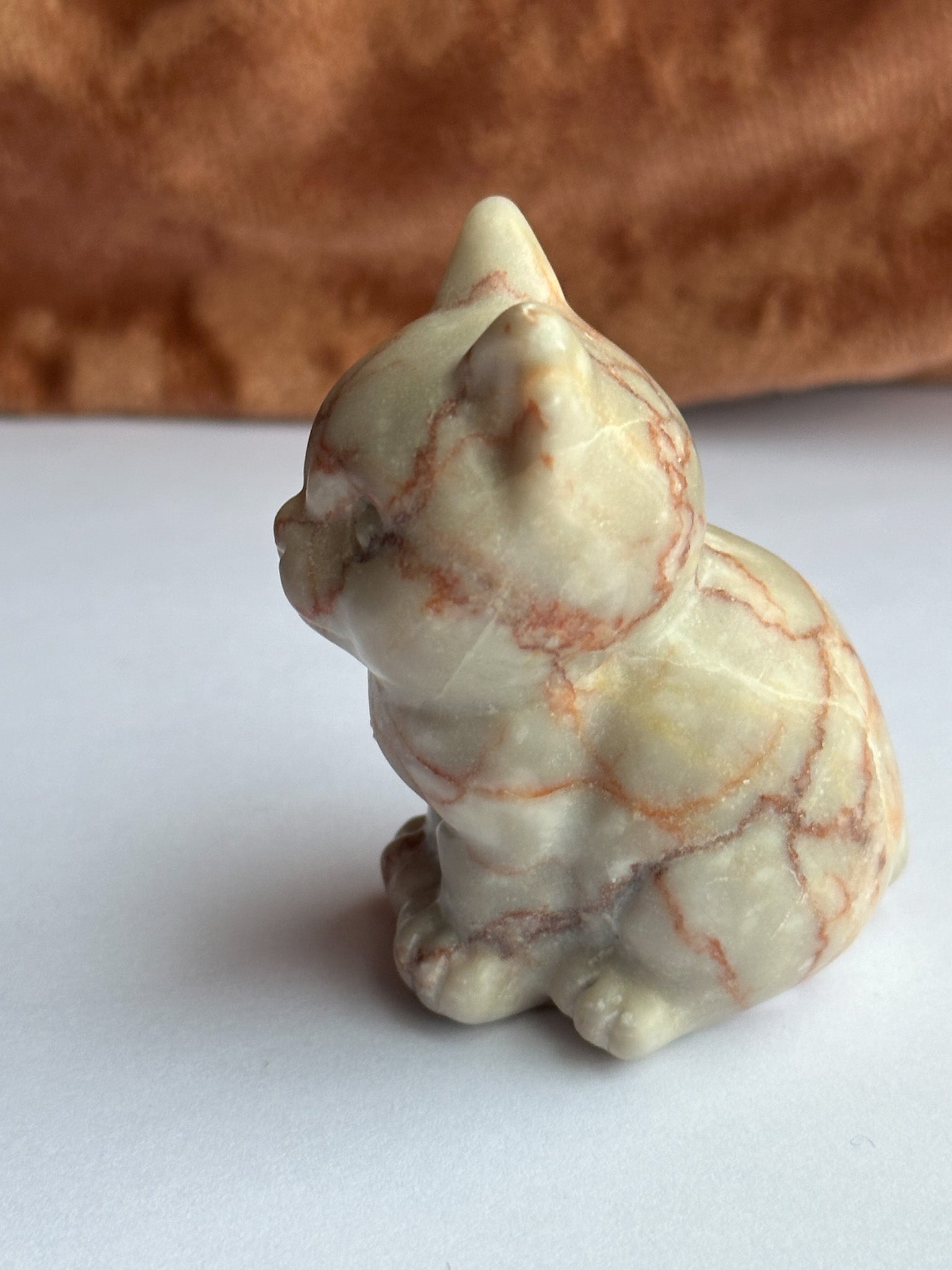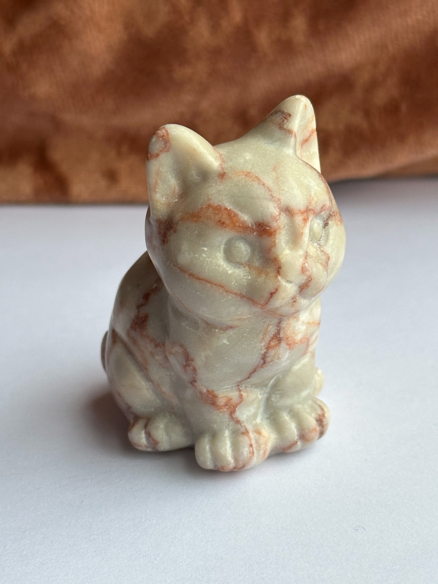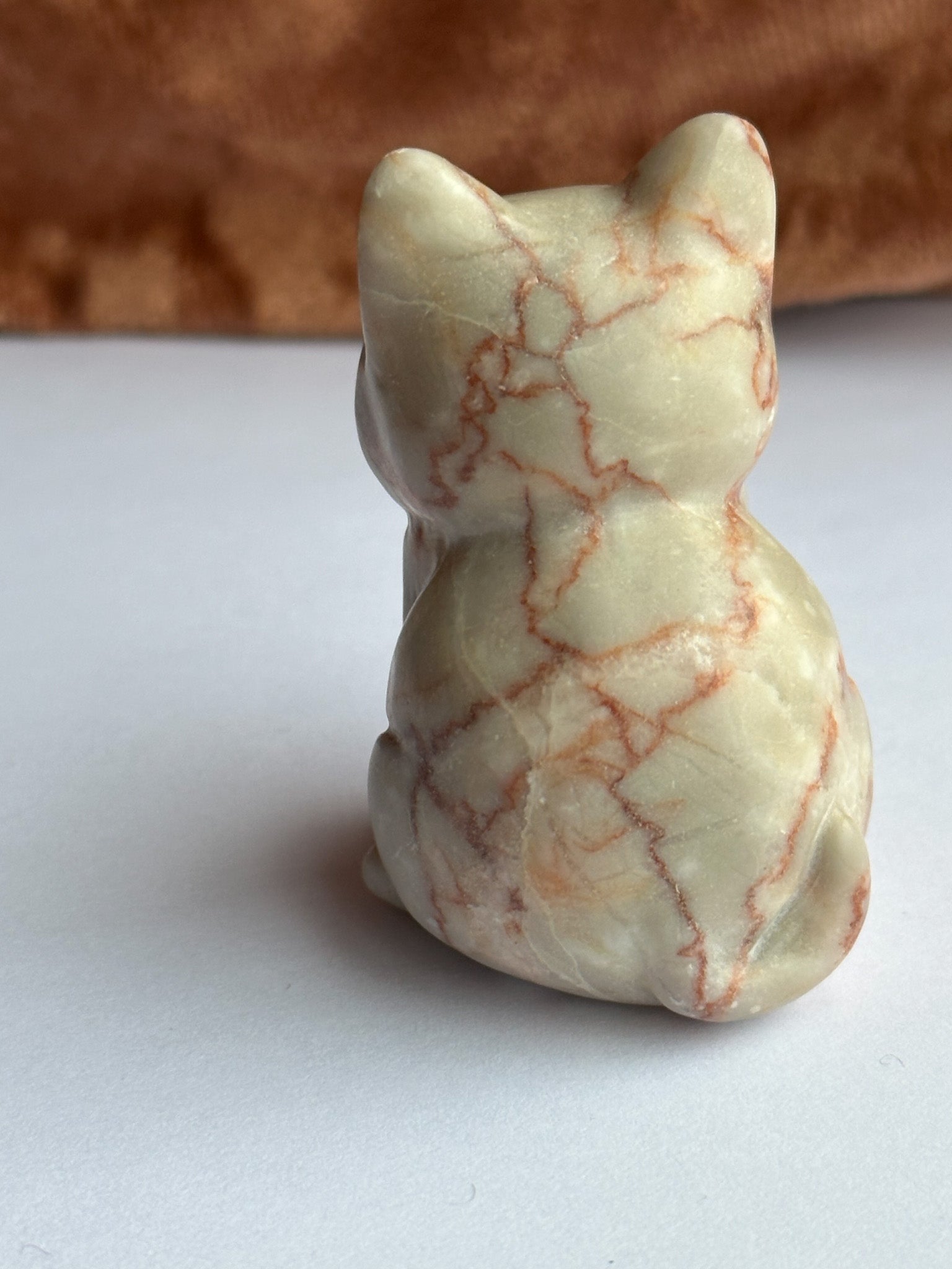 Deze carving is niet voor de poes! Deze flinke kattencarving gemaakt van Red Vein Jaspis is een perfecte toevoeging aan jouw interieur of edelstenen collectie. Natuurlijk ook een perfect cadeau voor de catmoms en dads onder ons!