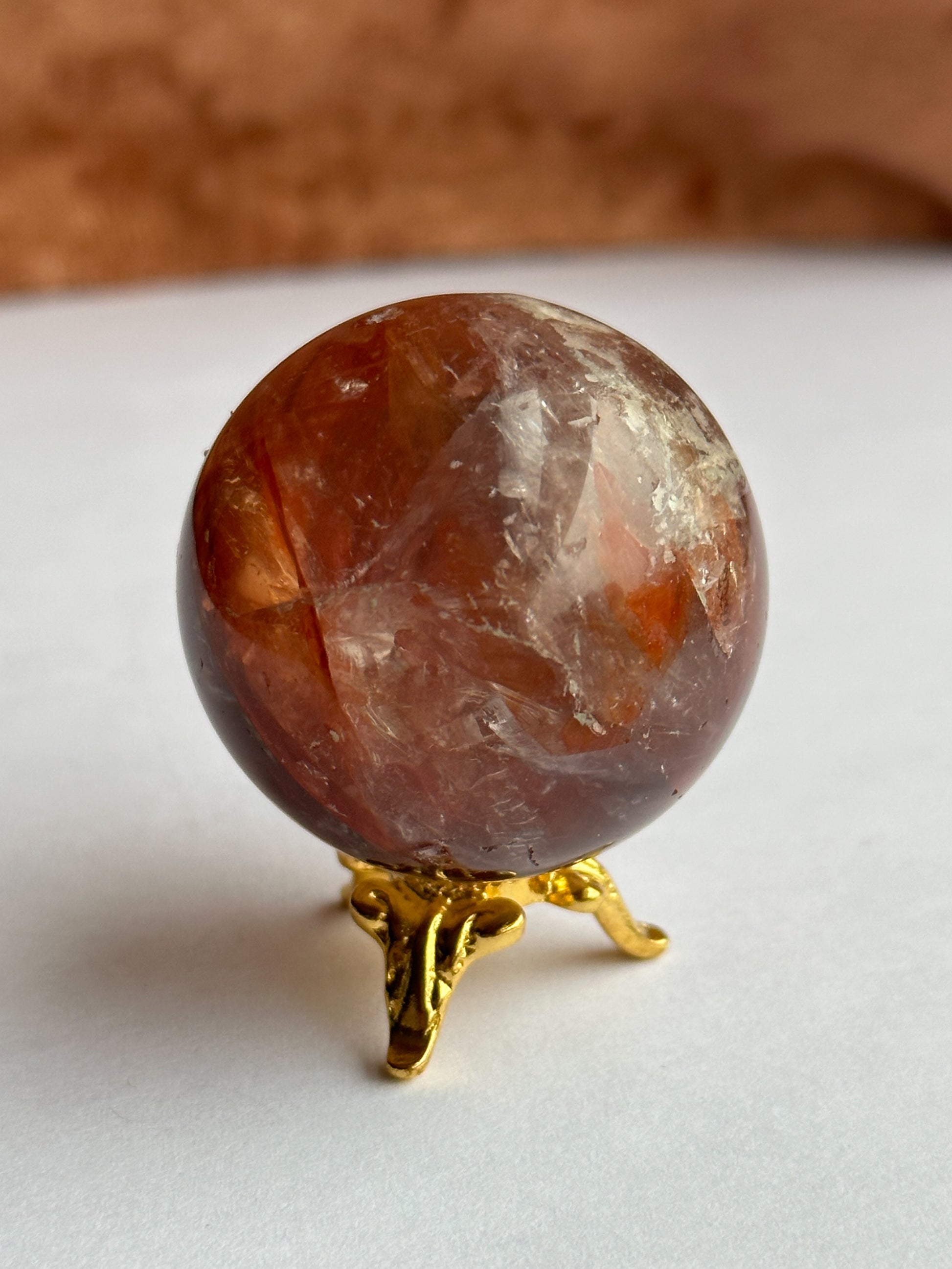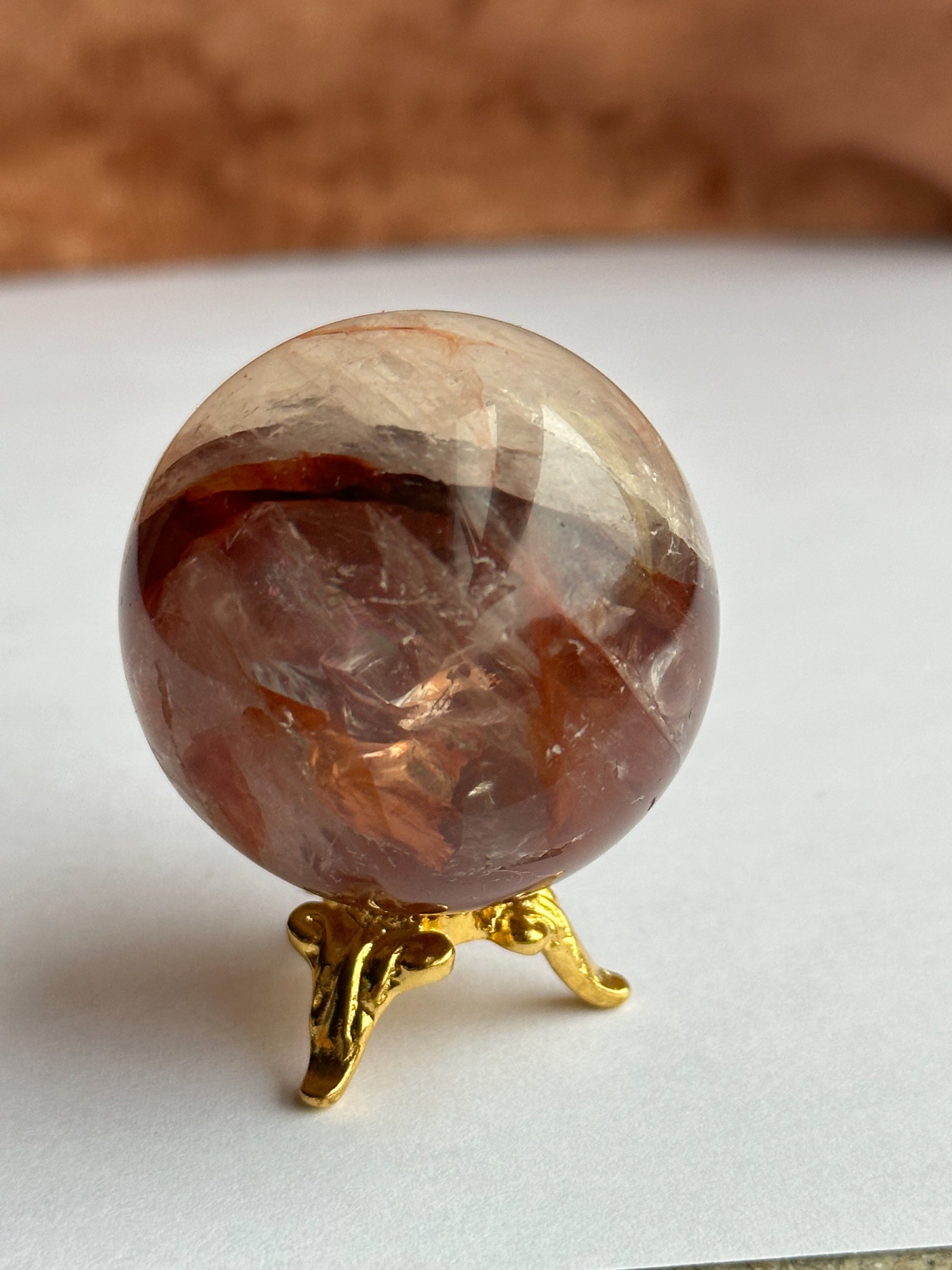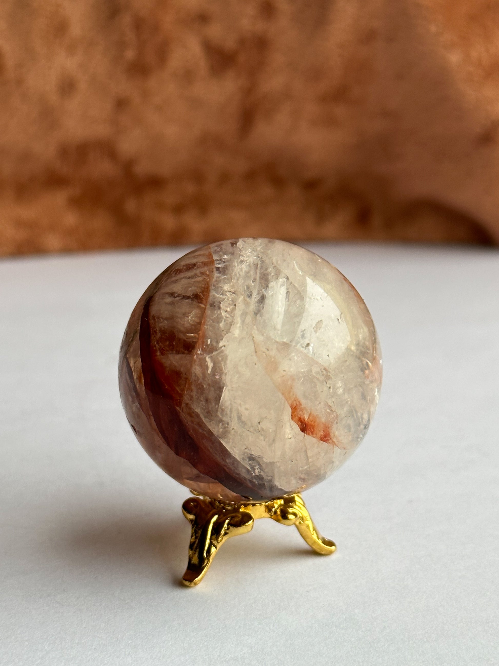 Bij deze bol blijf je maar kijken, elke keer zie je een andere regenboog of schitterende kleur. Vuurkwarts is een edelsteen waarbij je telkens nieuwe lagen en onderdelen ontdekt. Deze bol heeft een mooi formaat en kan jouw collectie uitbreiden. Het wordt ook wel Harlekijnkwarts genoemd door de speelse vormen die in de vuurkwarts terug te zien zijn.