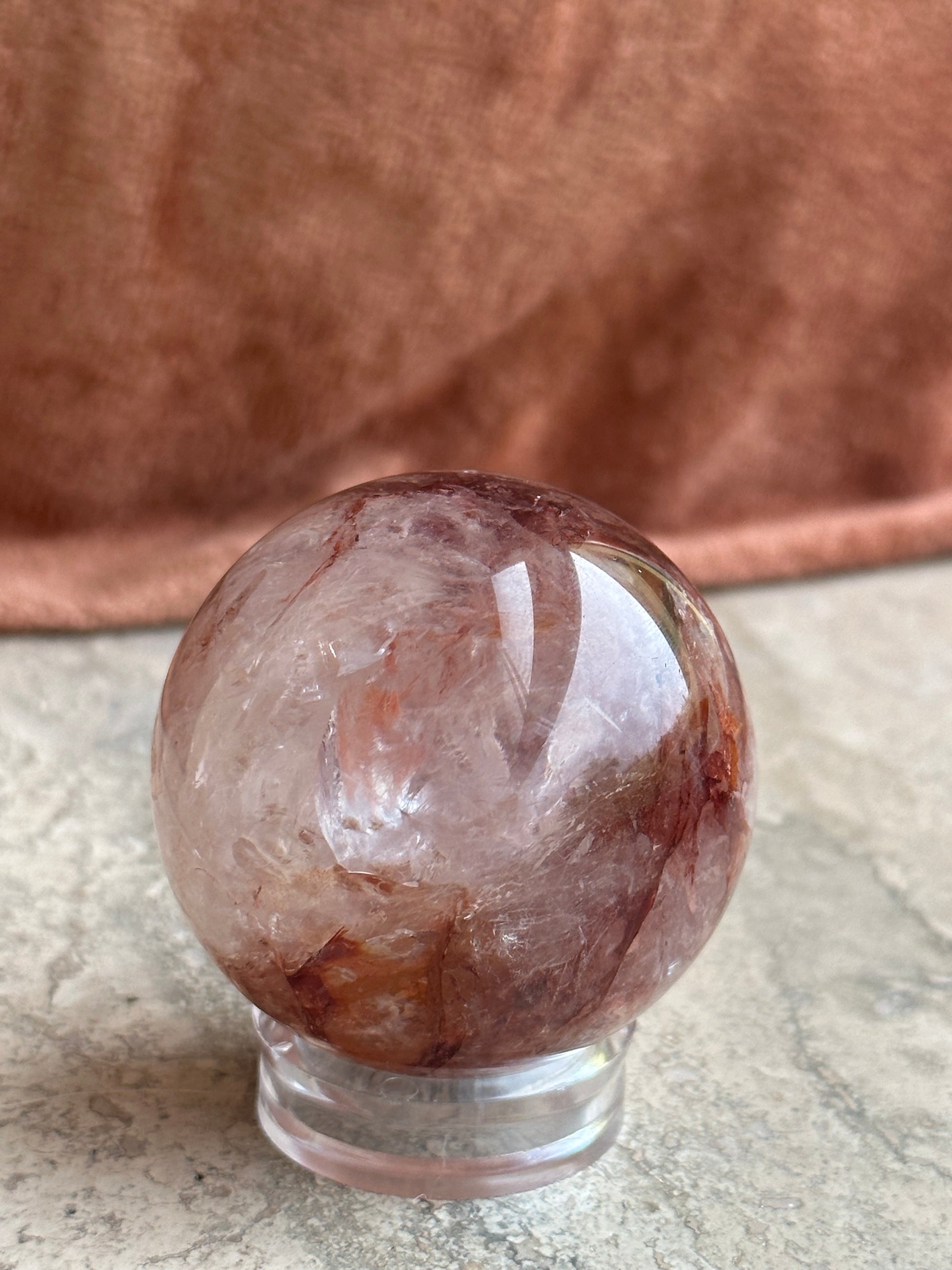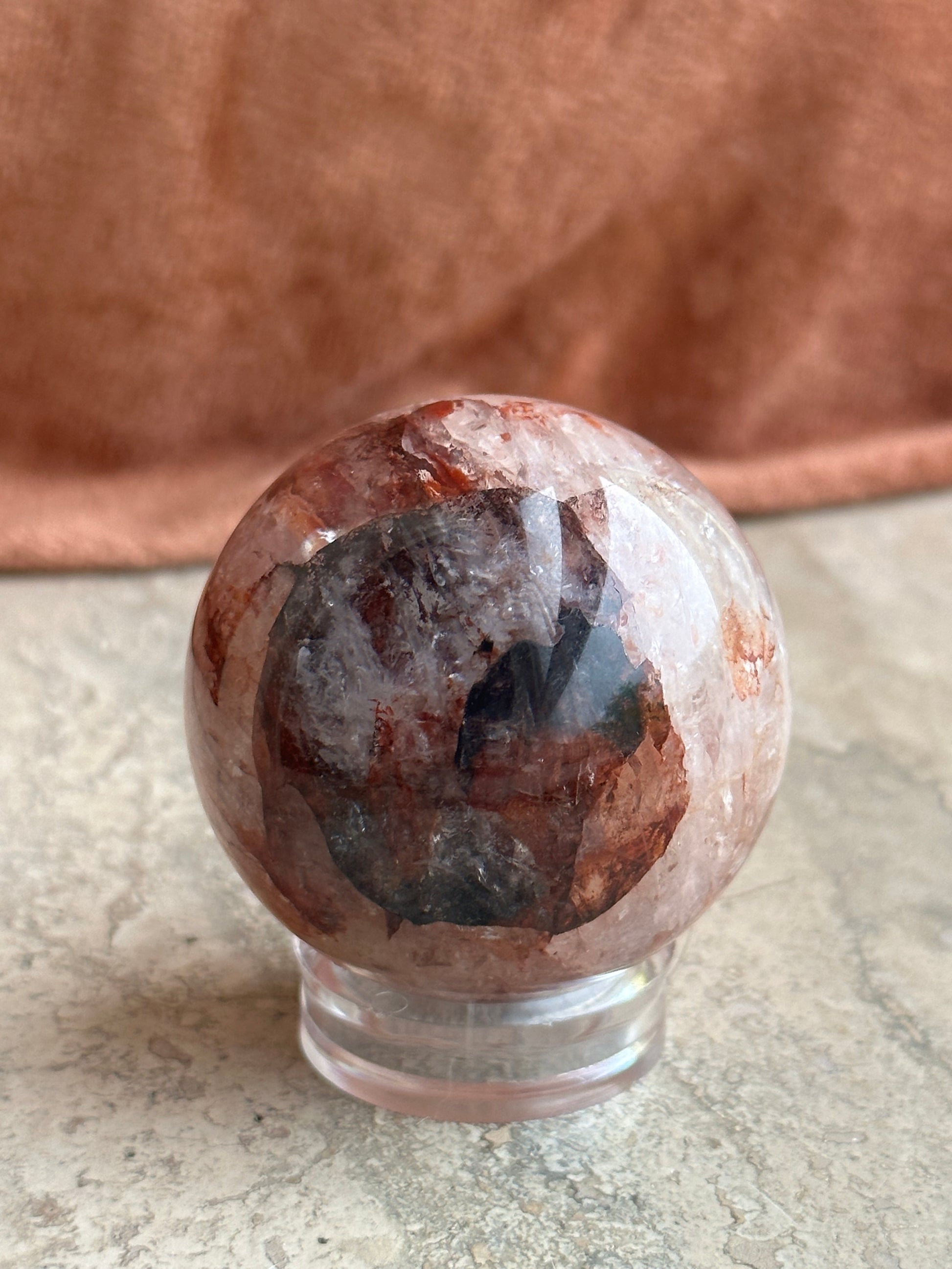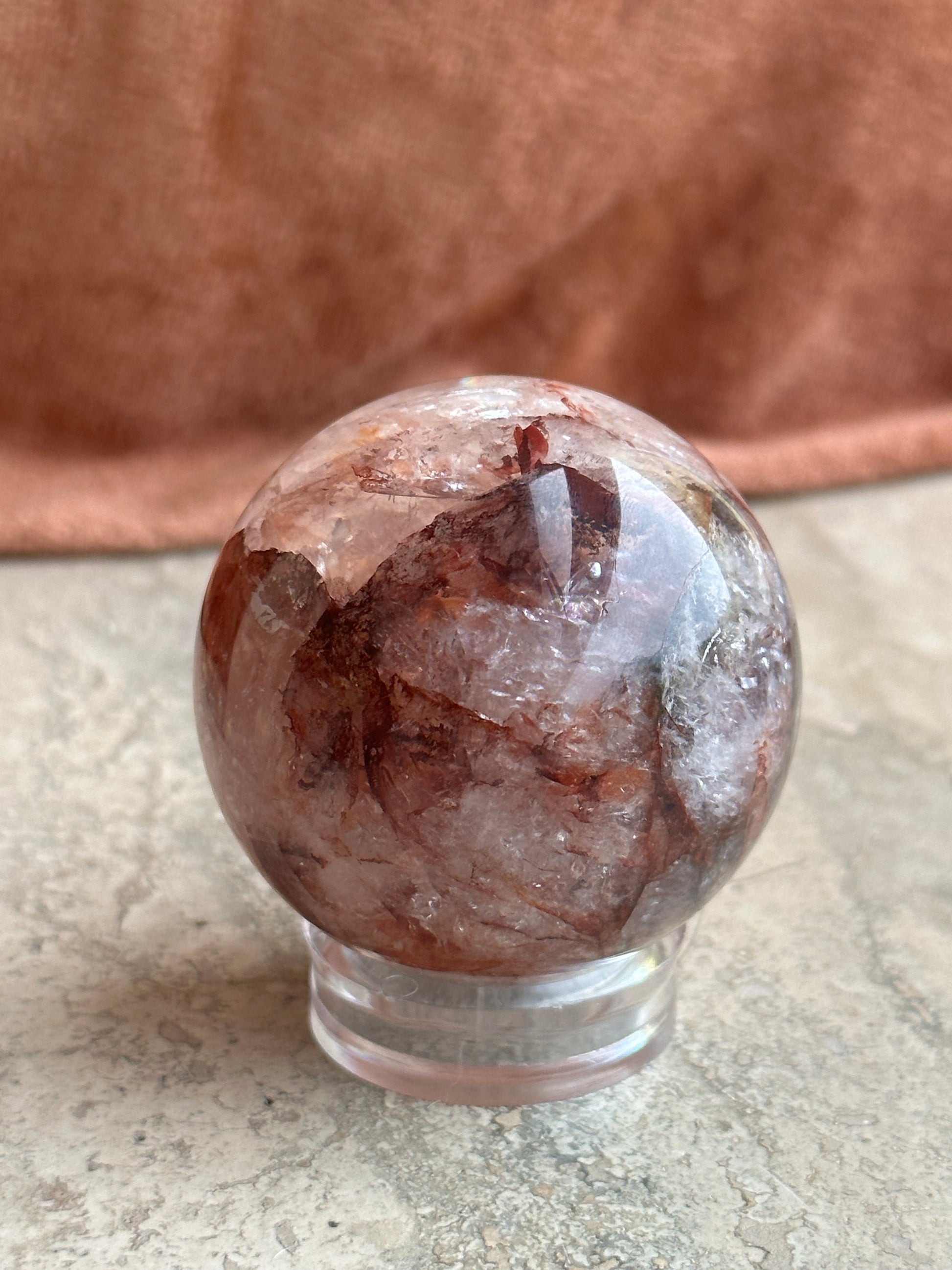 Bij deze bol blijf je maar kijken, elke keer zie je een andere regenboog of schitterende kleur. Vuurkwarts is een edelsteen waarbij je telkens nieuwe lagen en onderdelen ontdekt. Deze bol heeft een mooi formaat en kan jouw collectie uitbreiden. Het wordt ook wel Harlekijnkwarts genoemd door de speelse vormen die in de vuurkwarts terug te zien zijn.