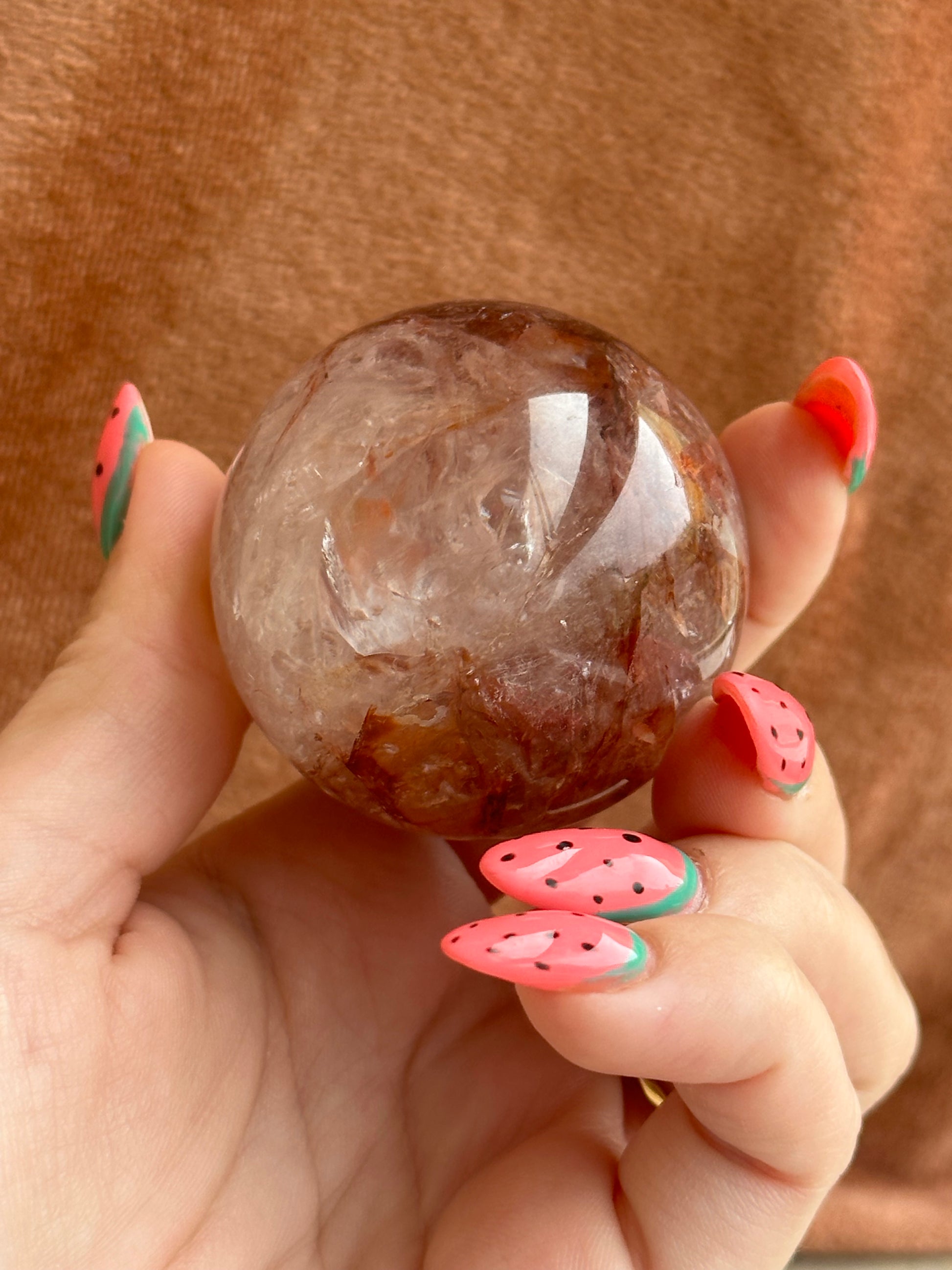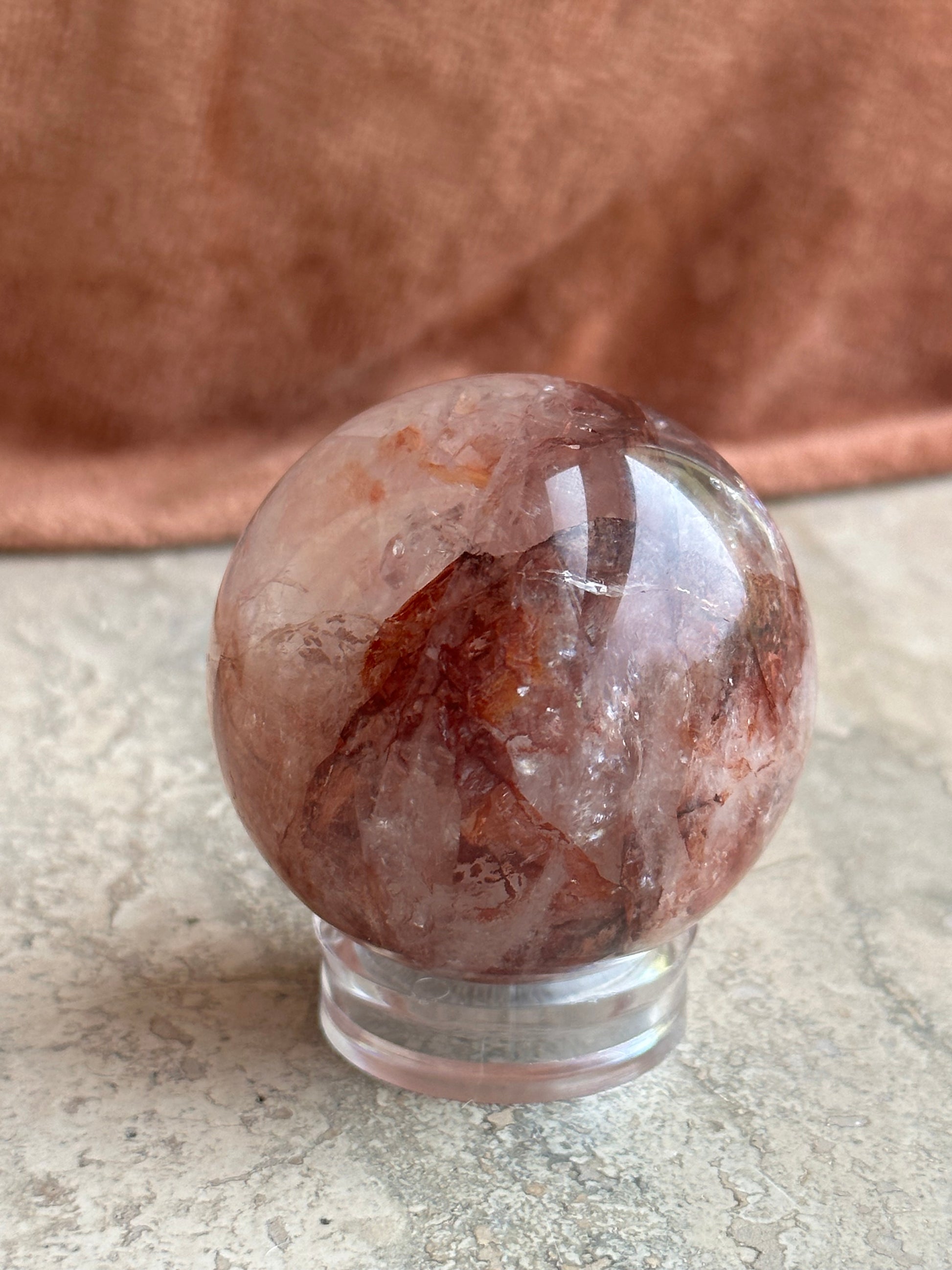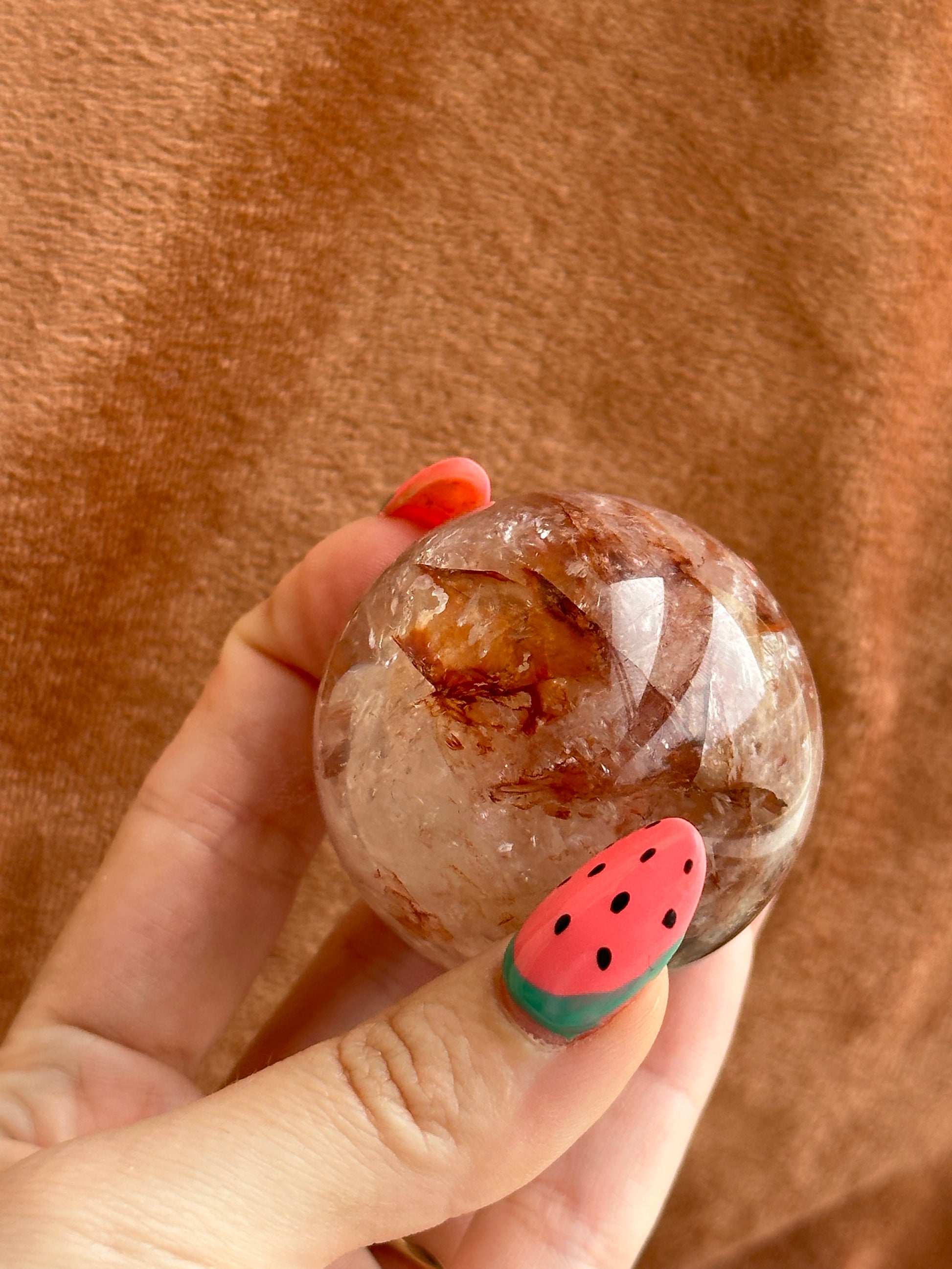 Bij deze bol blijf je maar kijken, elke keer zie je een andere regenboog of schitterende kleur. Vuurkwarts is een edelsteen waarbij je telkens nieuwe lagen en onderdelen ontdekt. Deze bol heeft een mooi formaat en kan jouw collectie uitbreiden. Het wordt ook wel Harlekijnkwarts genoemd door de speelse vormen die in de vuurkwarts terug te zien zijn.