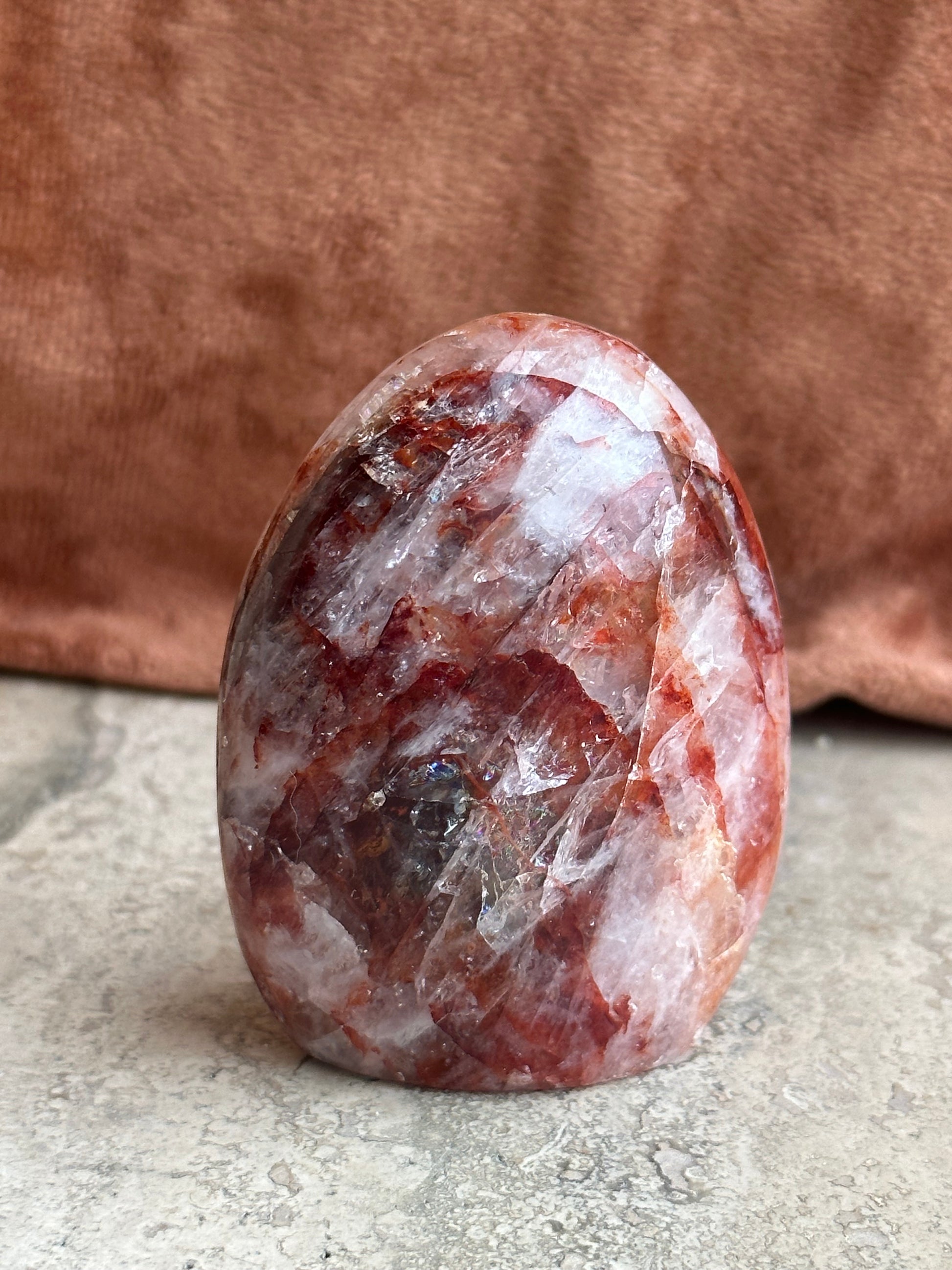 Bij deze freeform blijf je maar kijken, elke keer zie je een andere regenboog of schitterende kleur. Vuurkwarts is een edelsteen waarbij je telkens nieuwe lagen en onderdelen ontdekt. Deze freeform heeft een mooi formaat en kan jouw collectie uitbreiden. Het wordt ook wel Harlekijnkwarts genoemd door de speelse vormen die in de vuurkwarts terug te zien zijn.