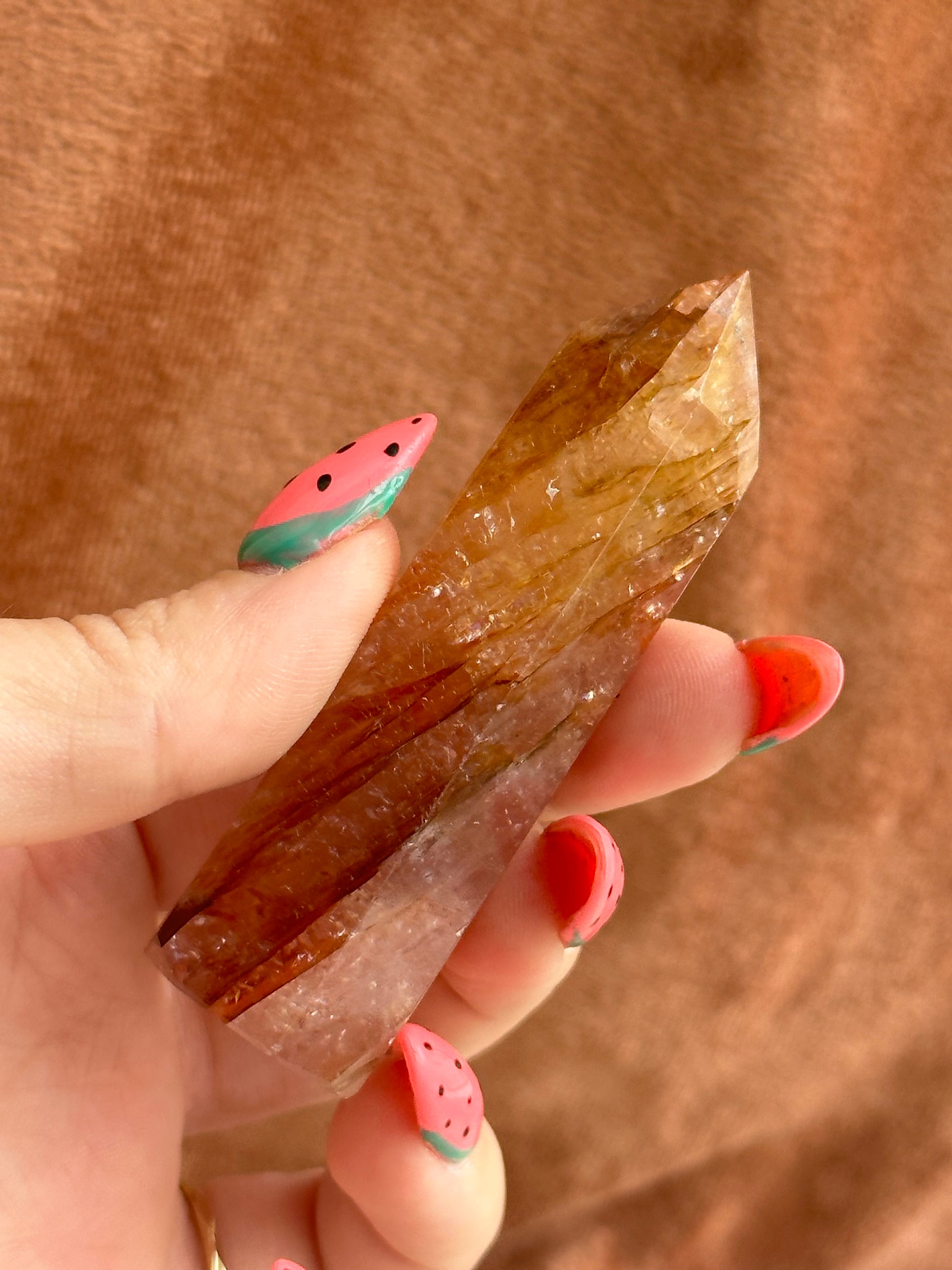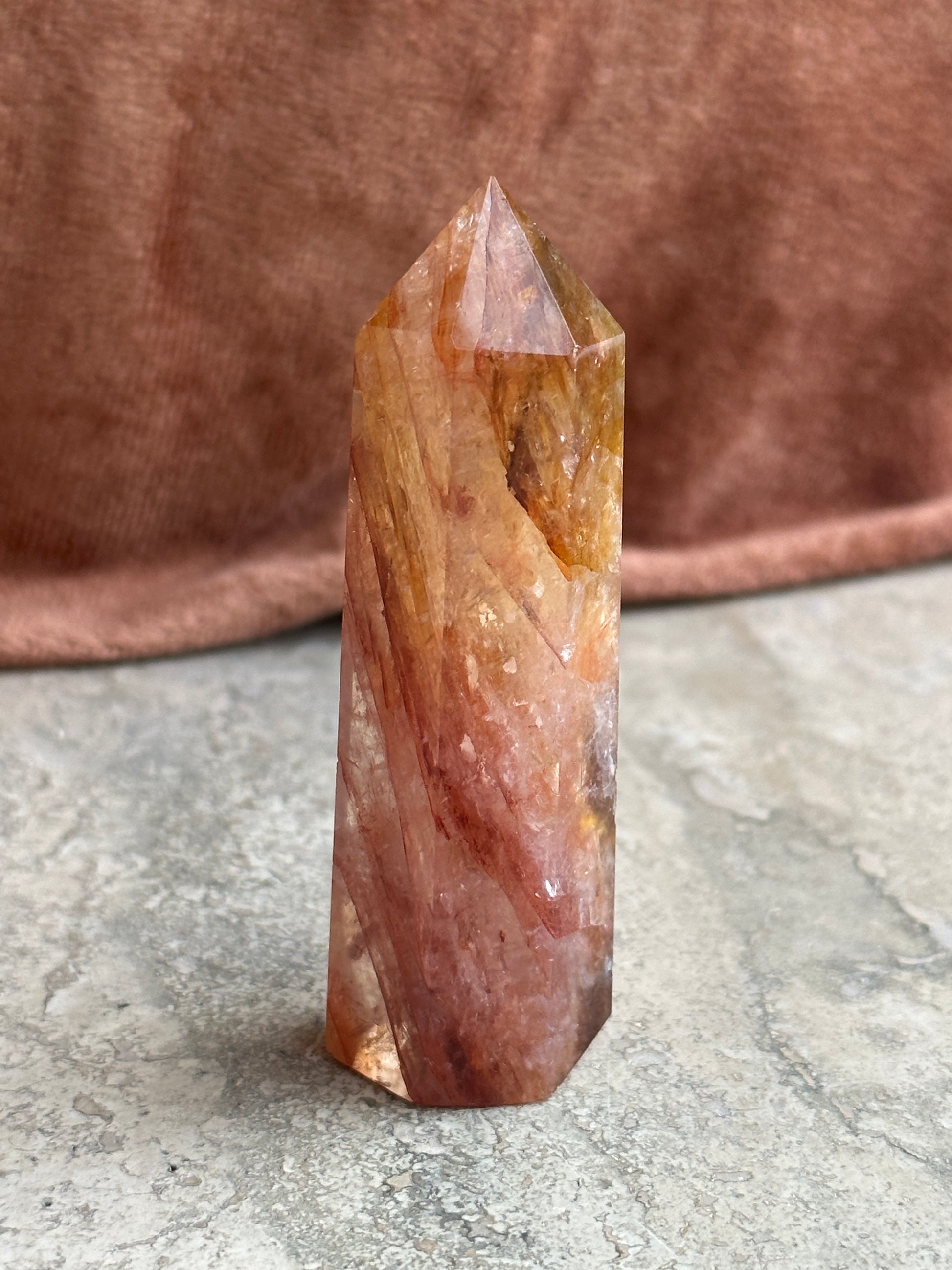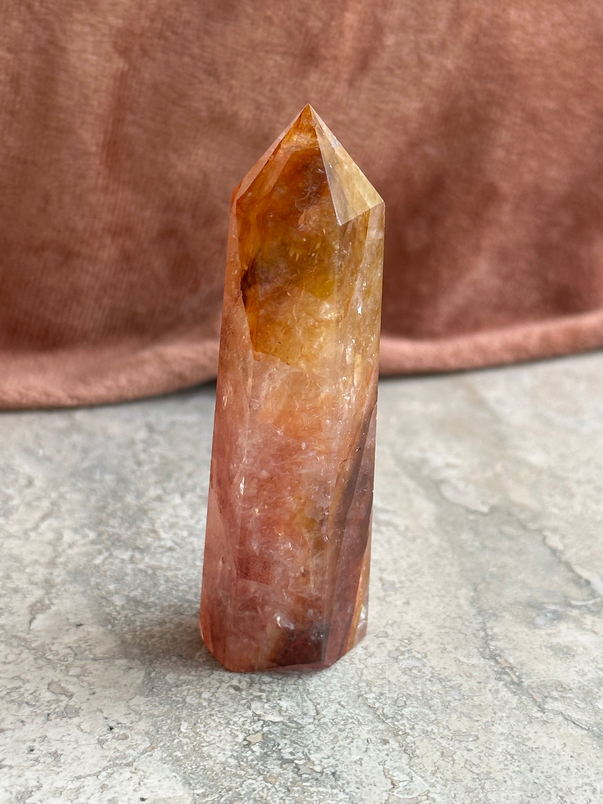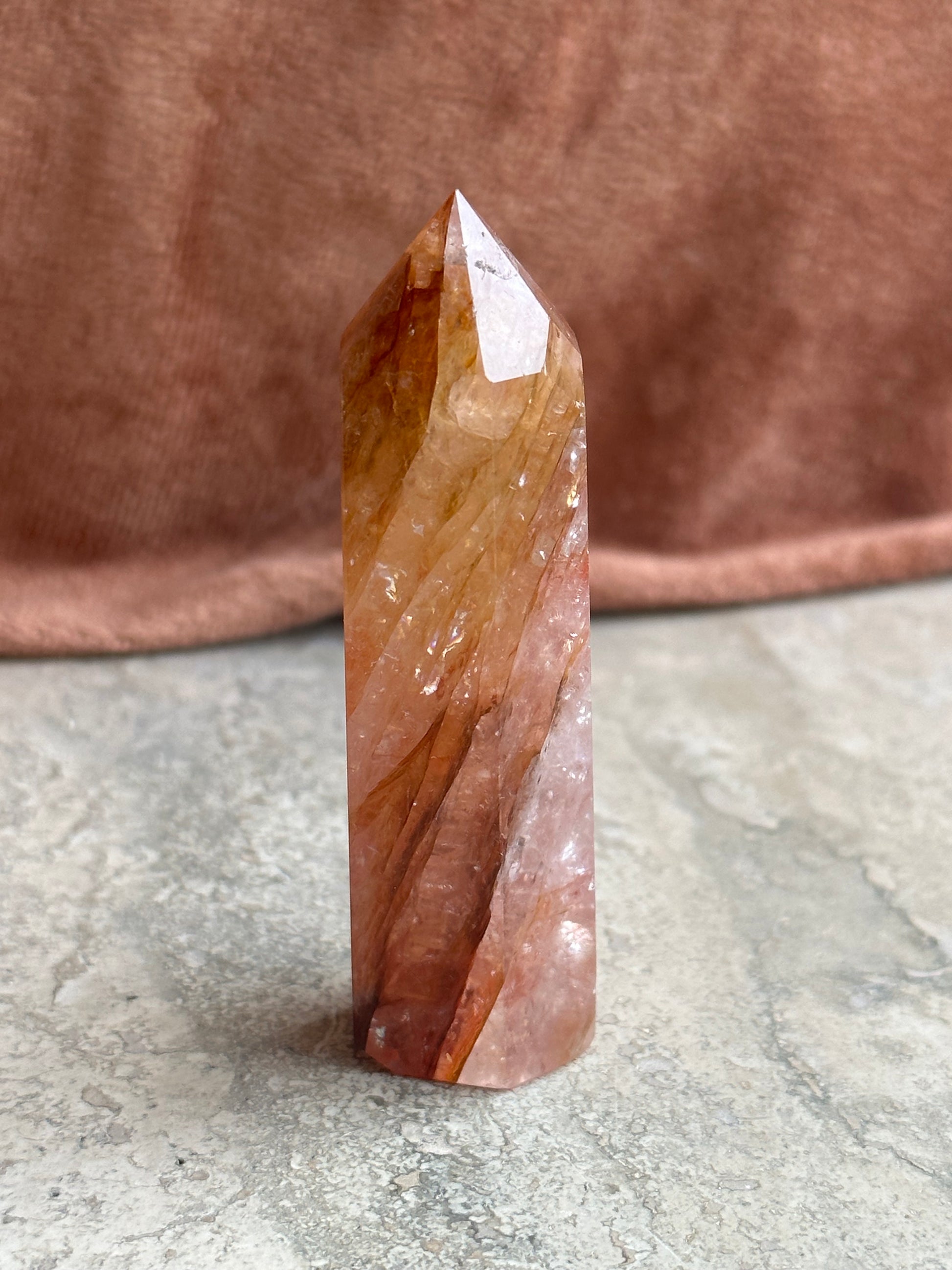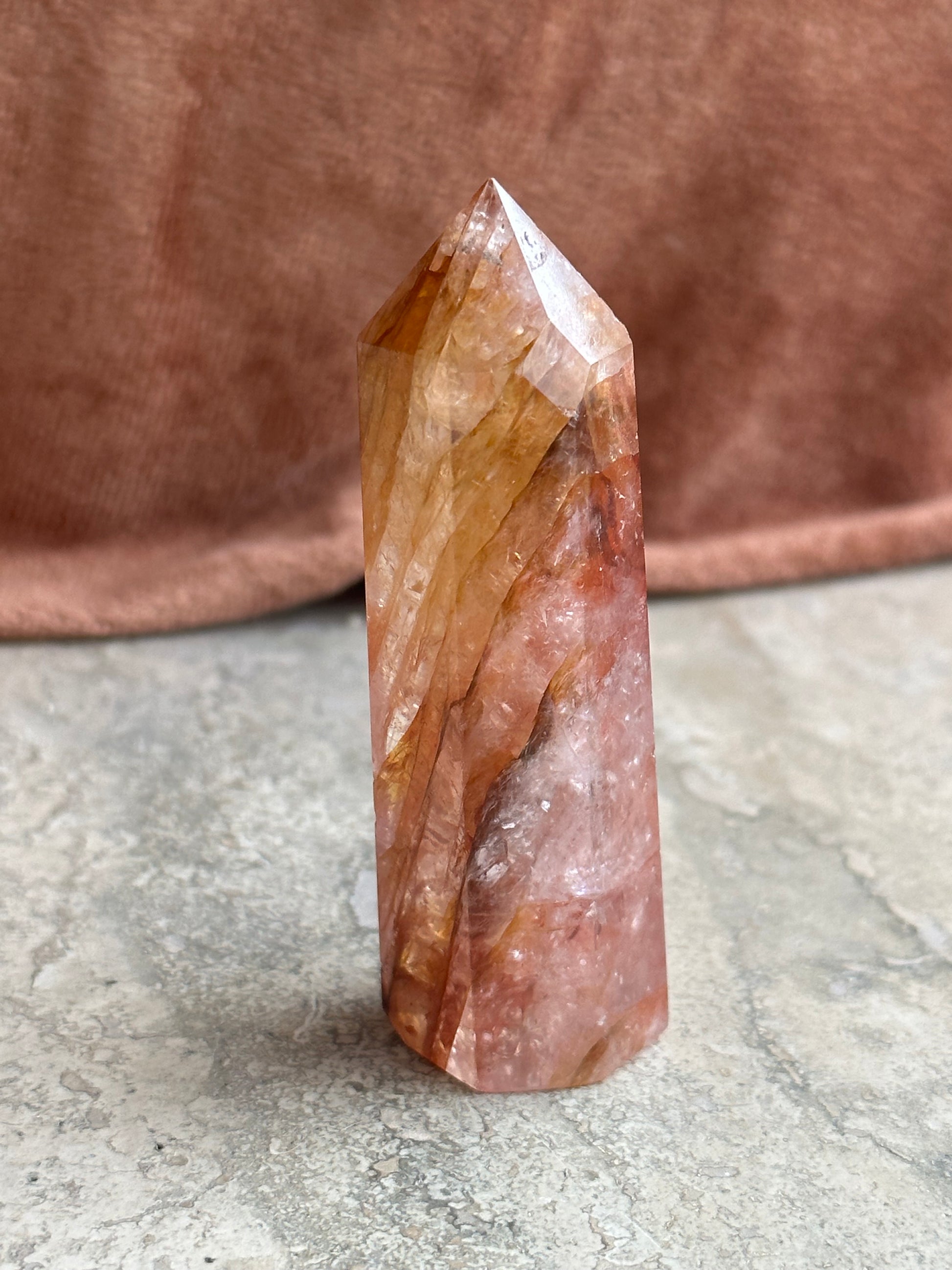 Bij deze toren blijf je maar kijken, elke keer zie je een andere regenboog of schitterende kleur. Vuurkwarts is een edelsteen waarbij je telkens nieuwe lagen en onderdelen ontdekt. Deze toren heeft een mooi formaat en kan jouw collectie uitbreiden. Het wordt ook wel Harlekijnkwarts genoemd door de speelse vormen die in de vuurkwarts terug te zien zijn.
