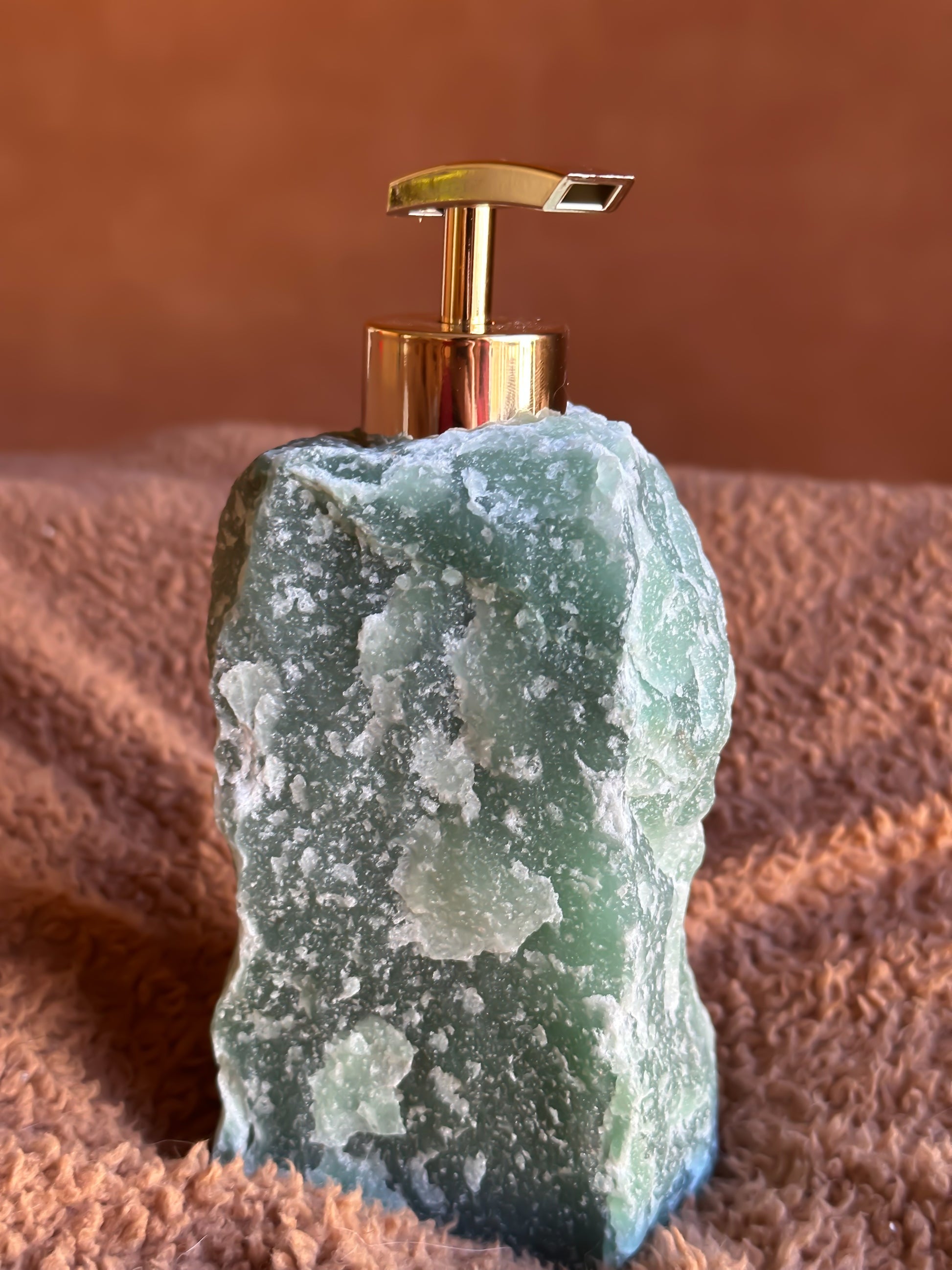 Onze zeeppompjes zijn niet alleen handig in gebruik, maar voegen ook een vleugje elegantie toe aan je badkamer of keuken. Dit zeeppompje is gemaakt van Groene Kwarts met gouden details. In dit zeeppompje kan je zelf een handzeep doen maar natuurlijk ook een hand créme of een ander fijn product.